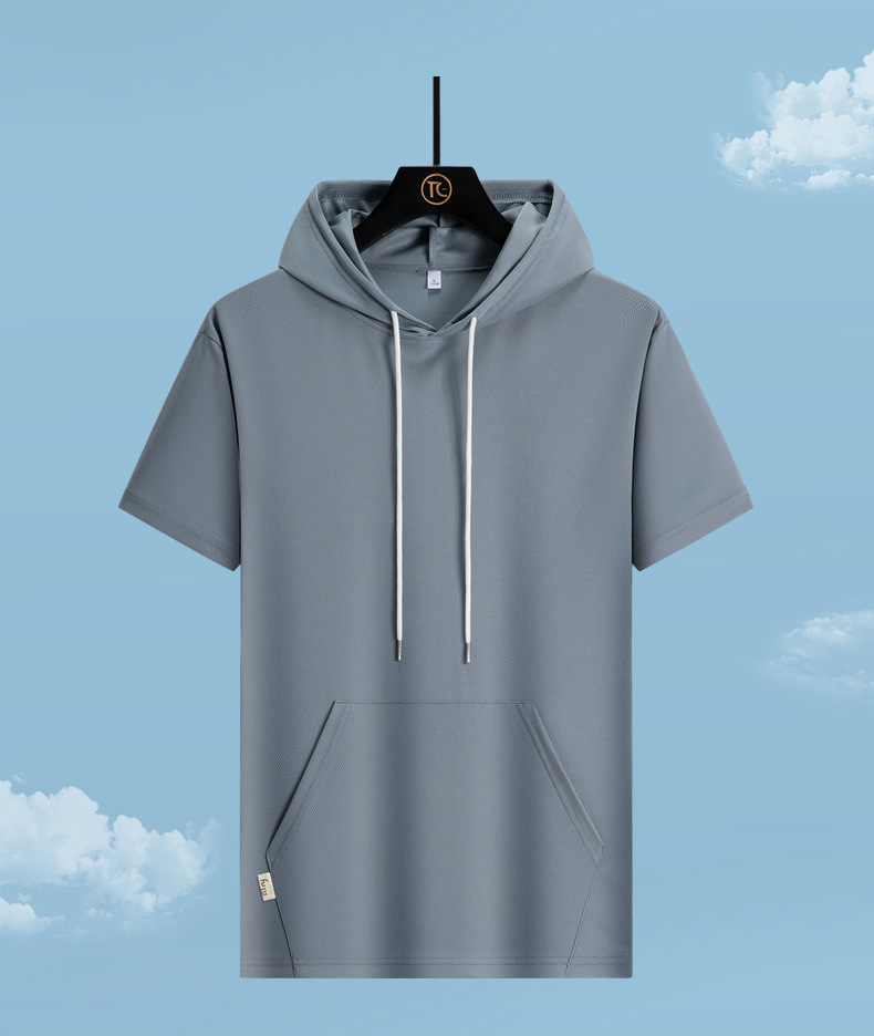 여름 짧은 T 후드 조끼 새로운 남성 스포츠 반팔 패션 트렌디 브랜드 느슨한 통기성 티셔츠 캐주얼 스포츠