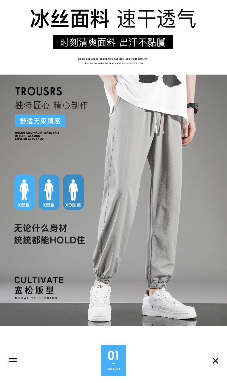 아이스 실크 바지 남자 여름 얇은 통기성 느슨한 빠른 건조 캐주얼 바지 남자 패션 올 매치 긴 바지스토어 가기