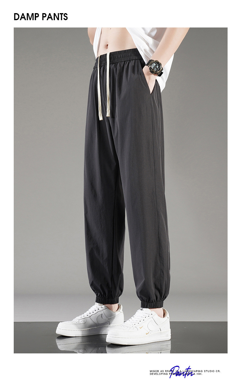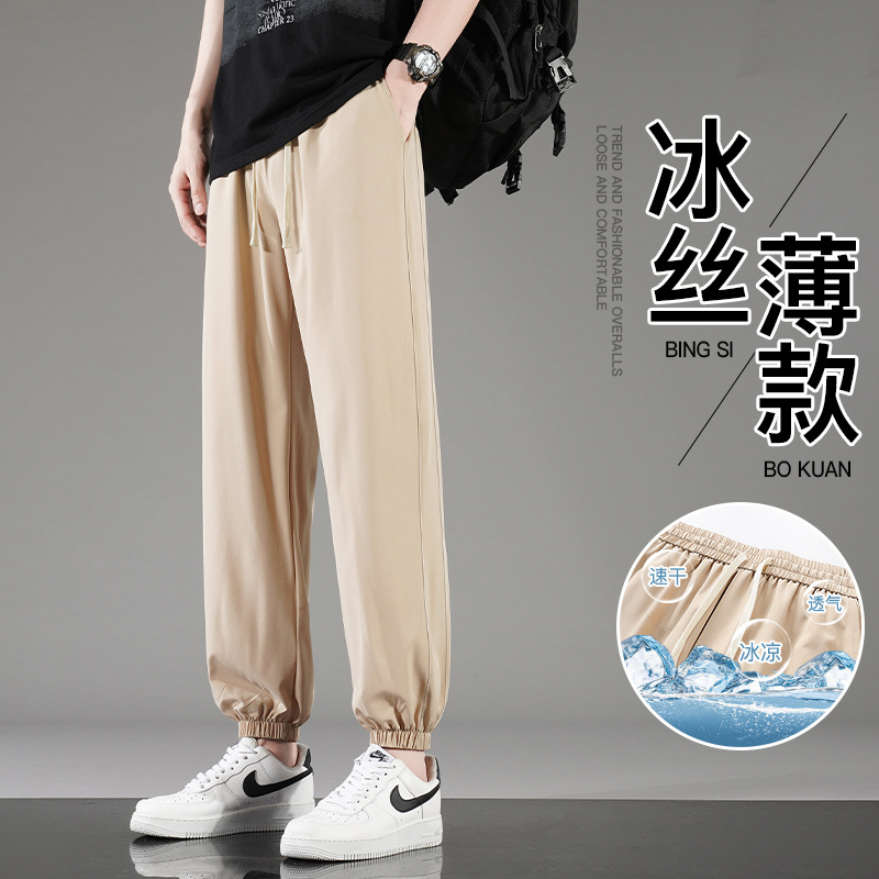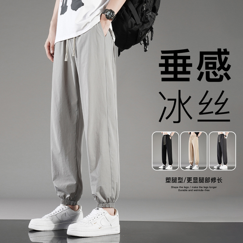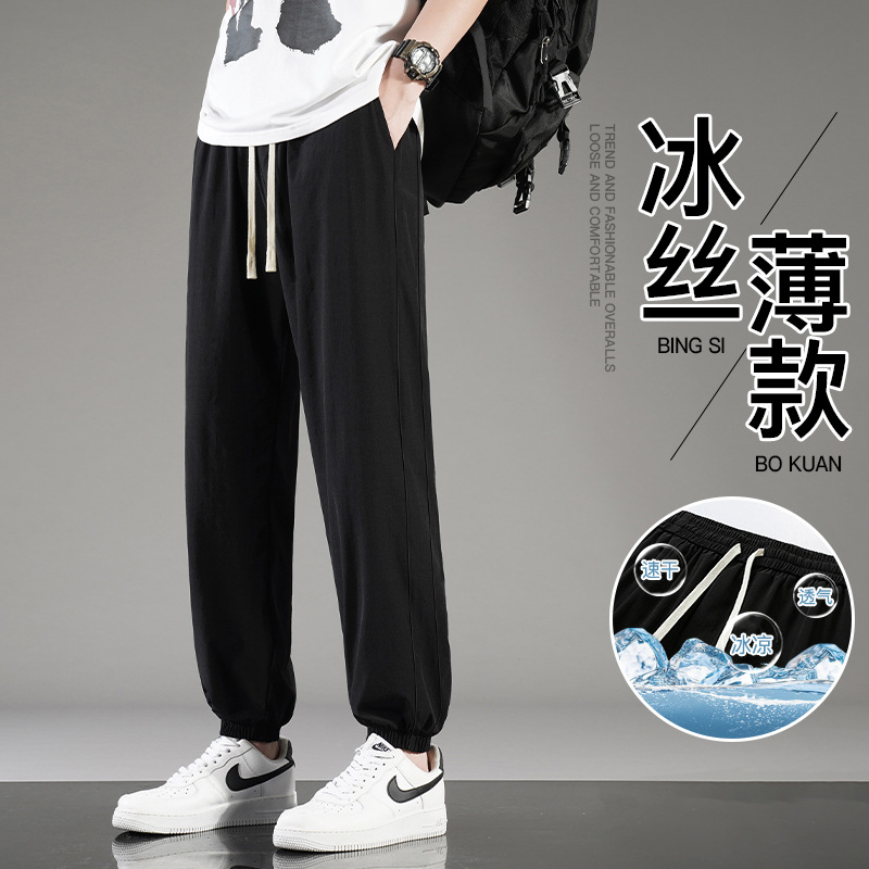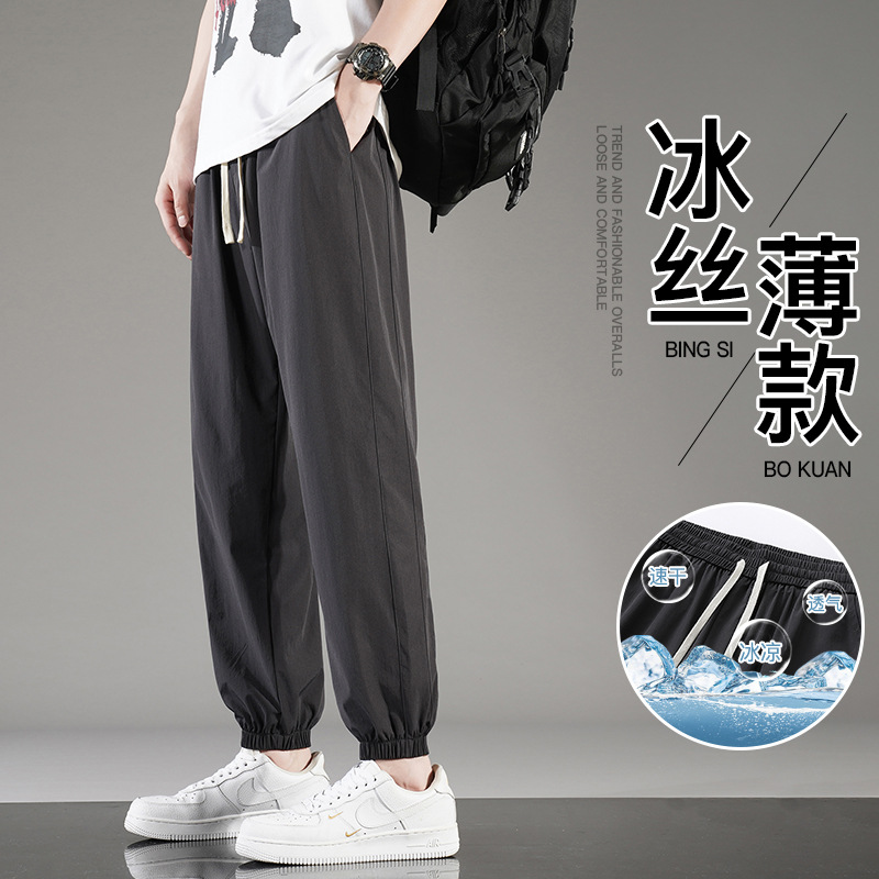 아이스 실크 바지 남자 여름 얇은 통기성 느슨한 빠른 건조 캐주얼 바지 남자 패션 올 매치 긴 바지