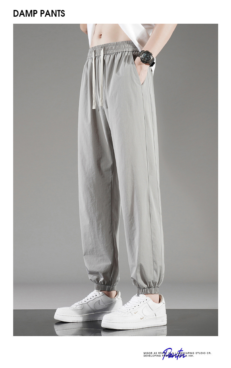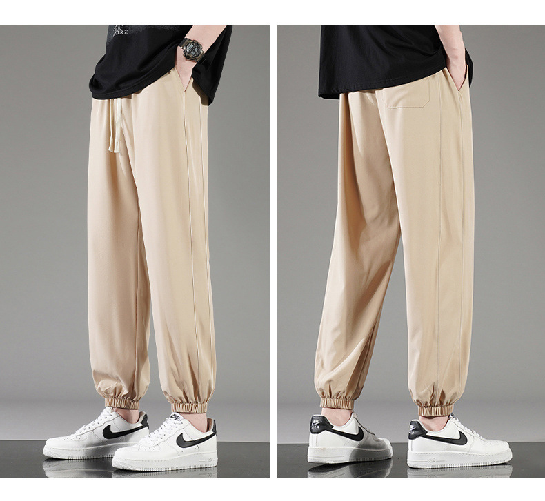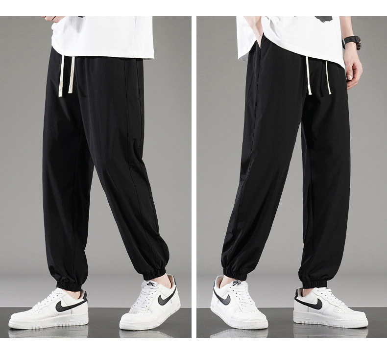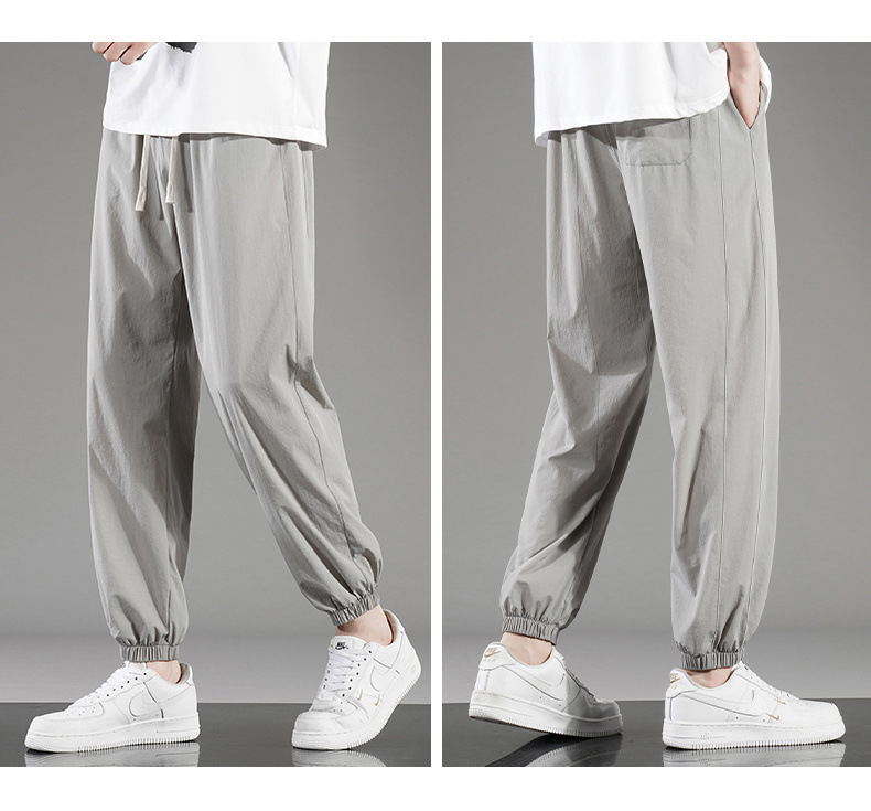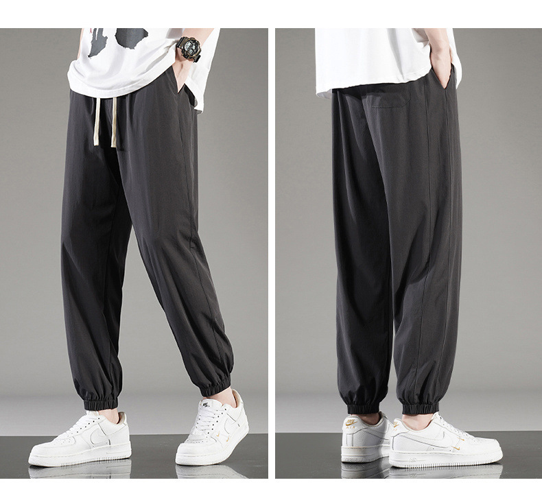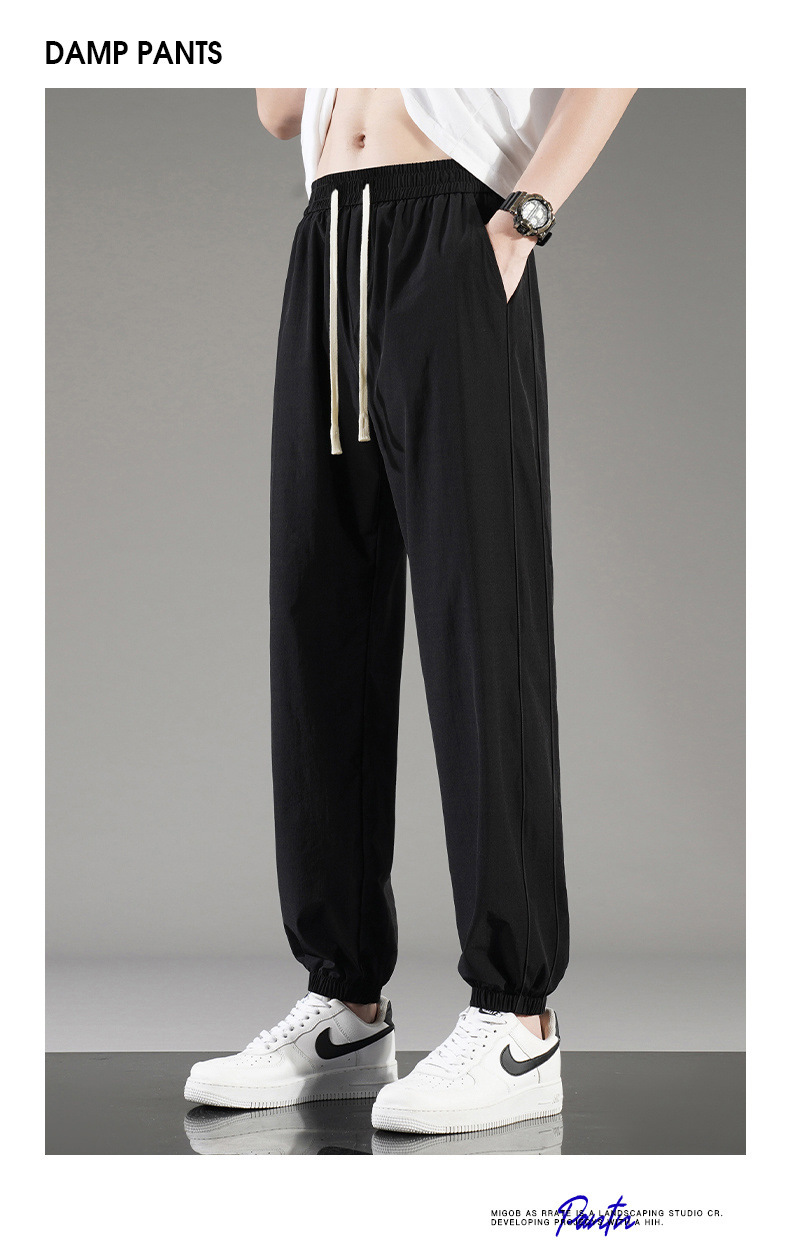 아이스 실크 바지 남자 여름 얇은 통기성 느슨한 빠른 건조 캐주얼 바지 남자 패션 올 매치 긴 바지