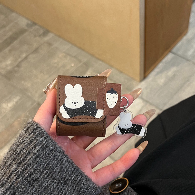 • 【가죽 패턴 헤드폰 가방☆폴카 도트 버니 + 끈]