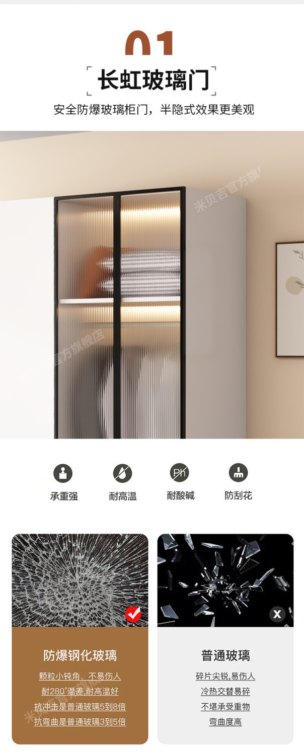 • 4개의 도어가 있는 180개의 긴 유리 메인 캐비닛