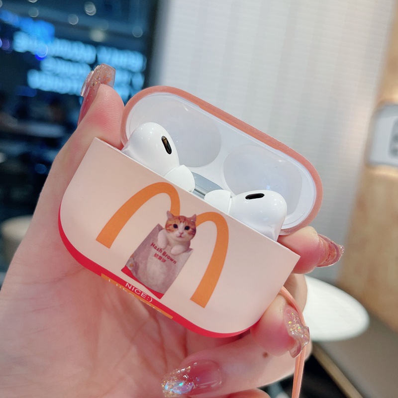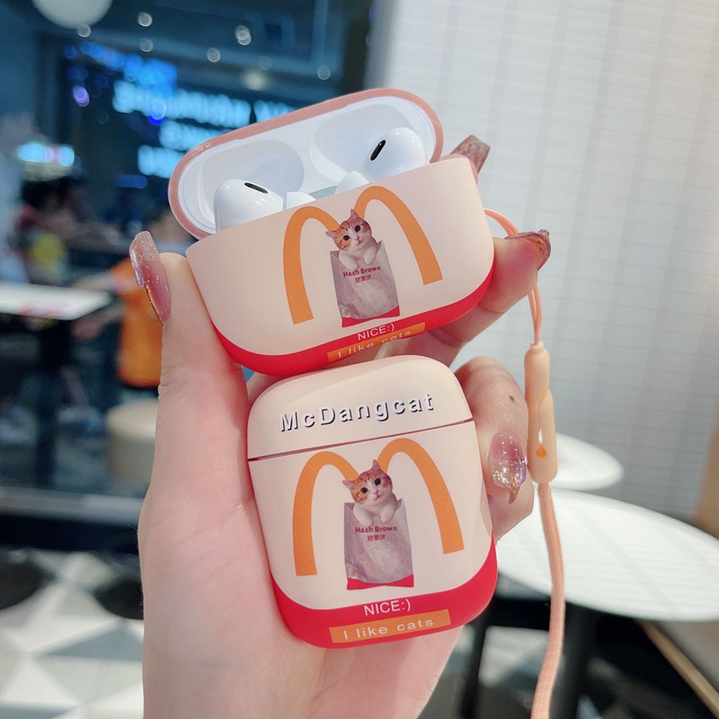 AirPodsPro2에 적합 햄버거 감자 튀김 Apple 헤드폰 보호 커버 AirPods3 젖빛 헤드폰 커버 헤드폰