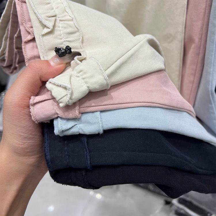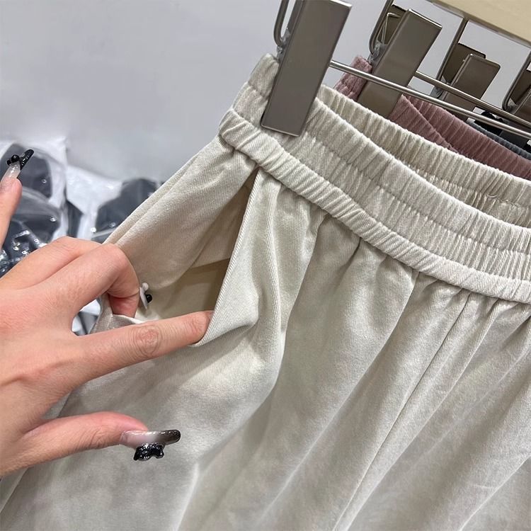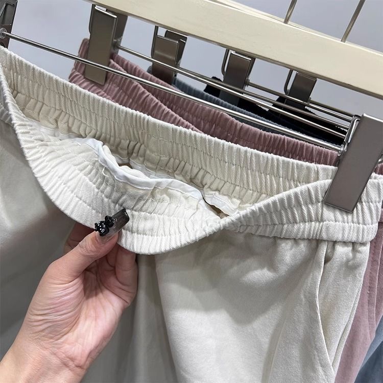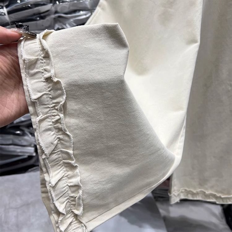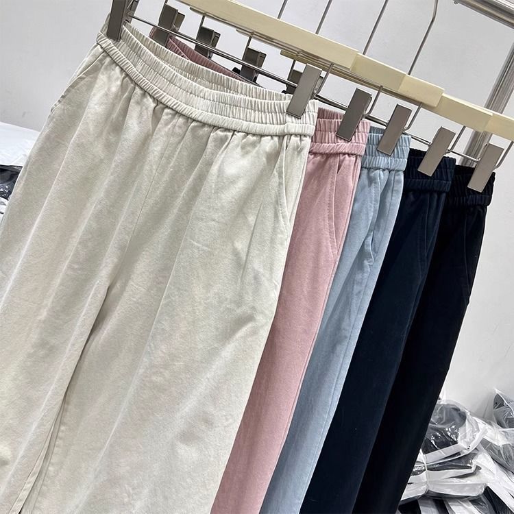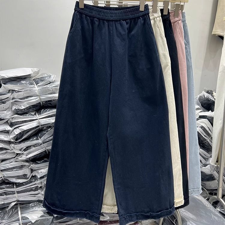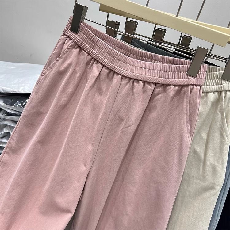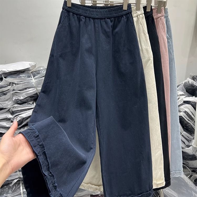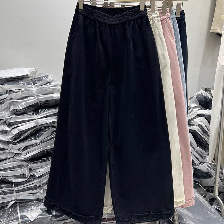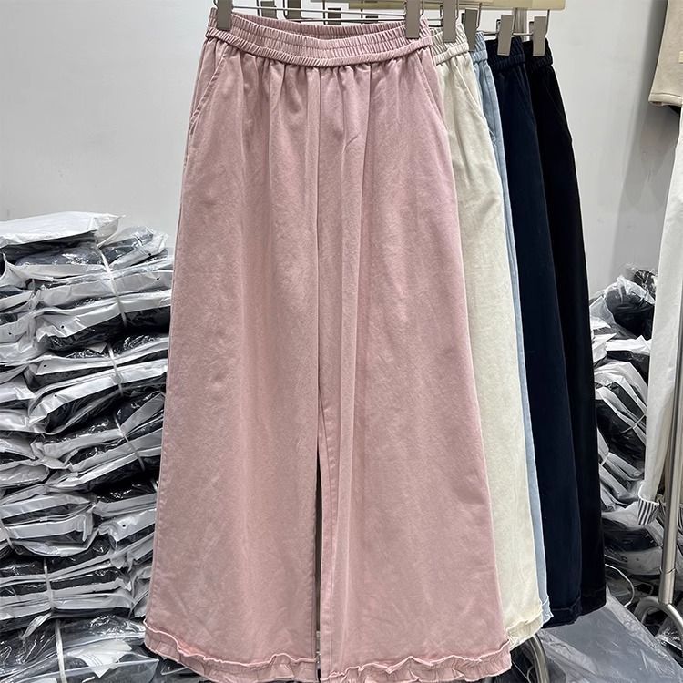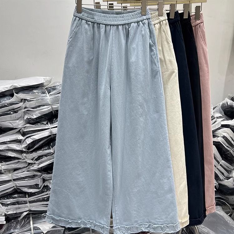 1.00 kg-150.00 kg 플러스 사이즈 레이스 스트레이트 와이드 레그 팬츠 여성용 지방 느슨한 슬리밍 올 매치 캐주얼 크롭 팬츠스토어 가기