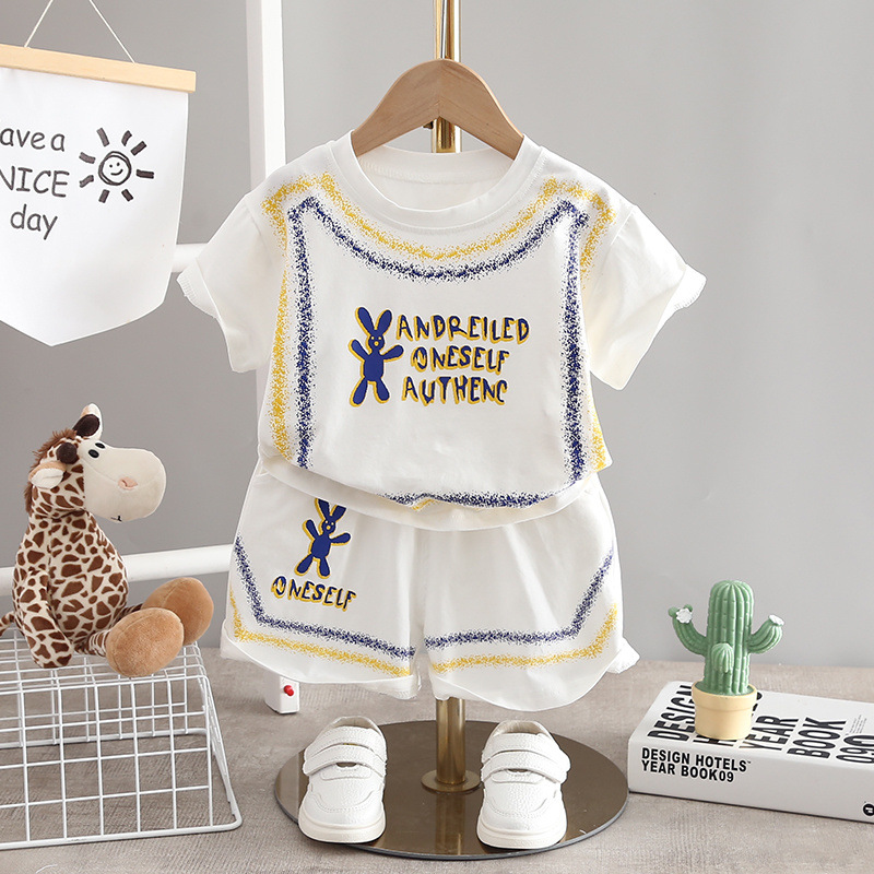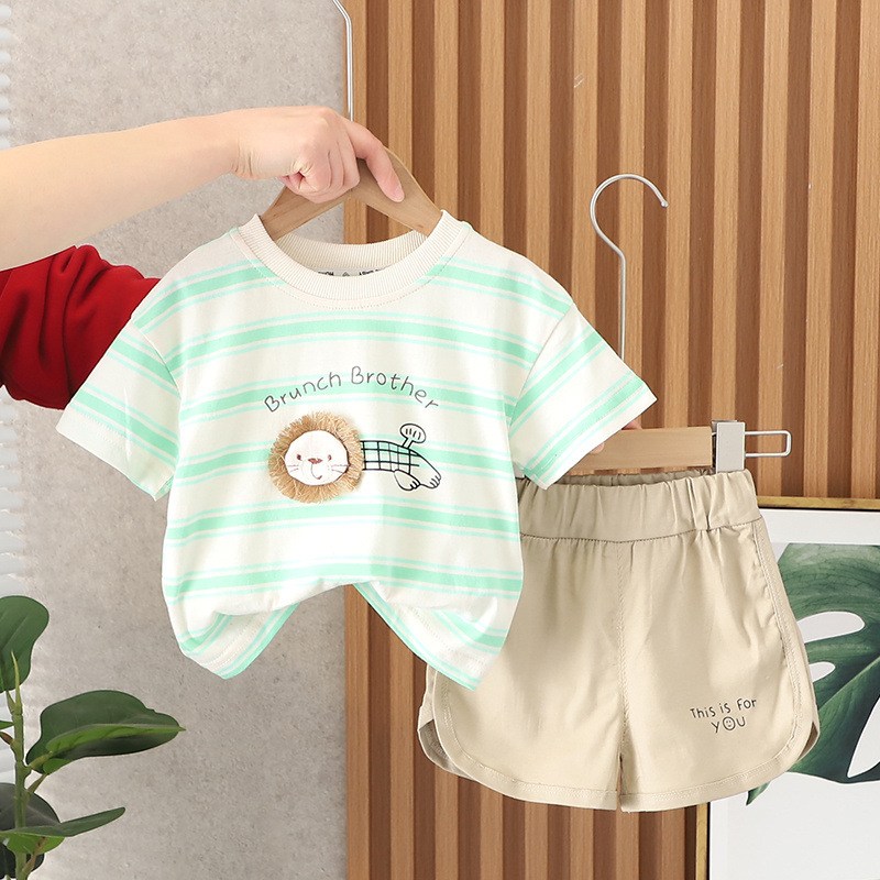 남성 아기 여름 세트 2025 새로운 아동복 아동복 서양식 소년 패션 줄무늬 반팔 투피스 세트