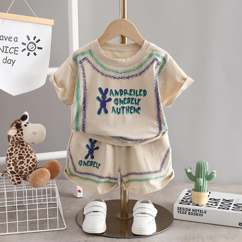 남성 아기 여름 세트 2025 새로운 아동복 아동복 서양식 소년 패션 줄무늬 반팔 투피스 세트스토어 가기