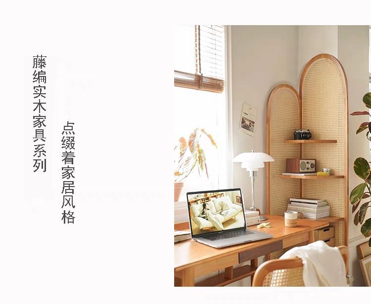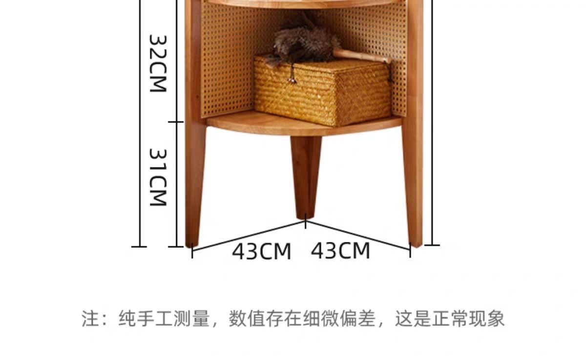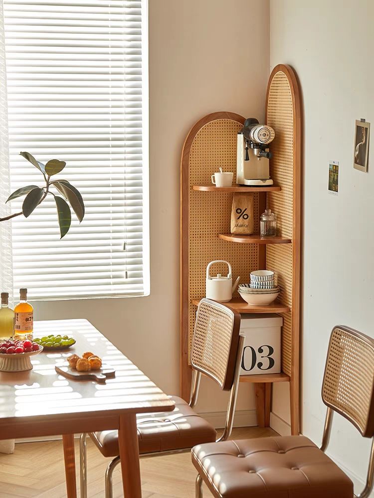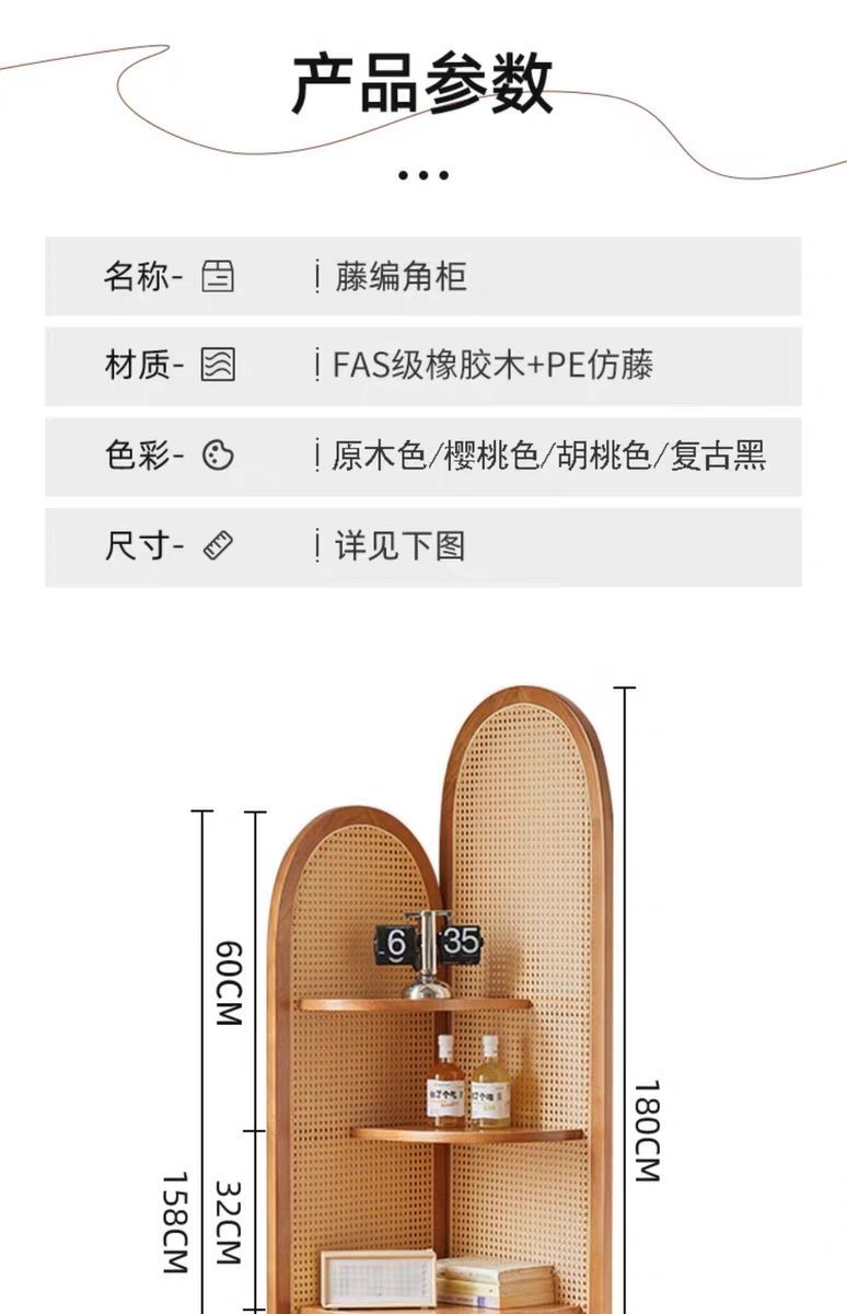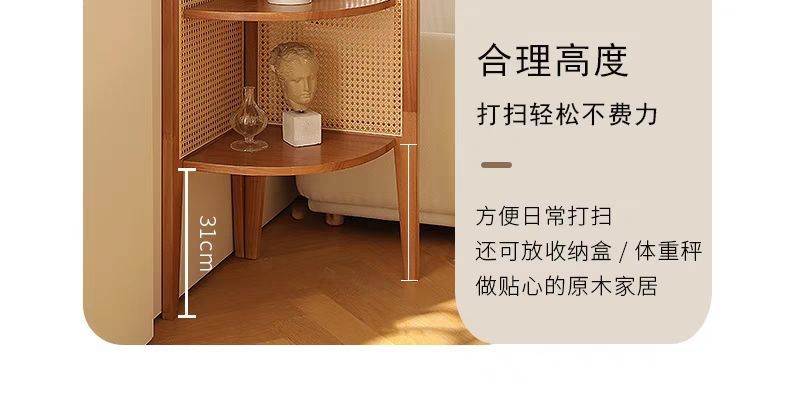 중간 및 복고풍 스타일 가구 삼각형 저장 랙 솔리드 우드 등나무 소파 후면 검은 바닥 디스플레이 코너 벽면 캐비닛스토어 가기