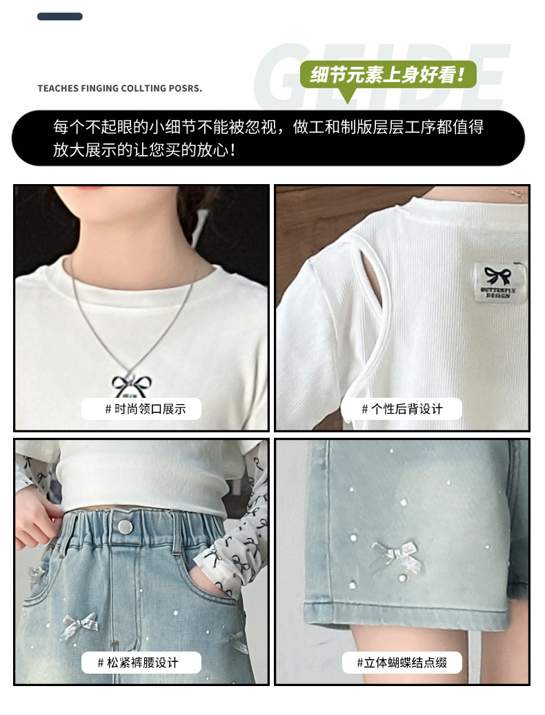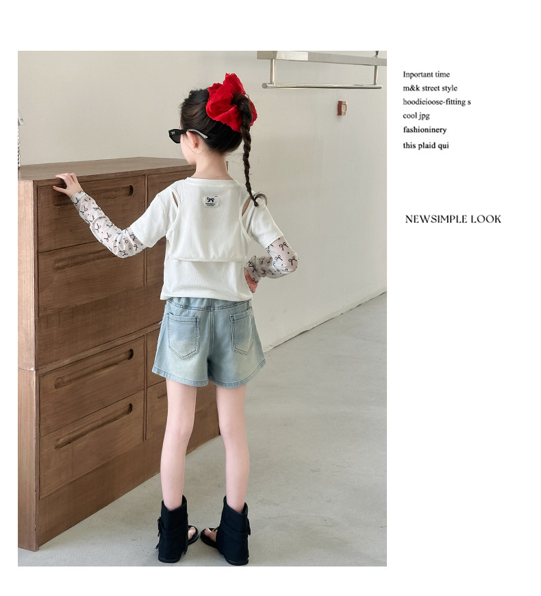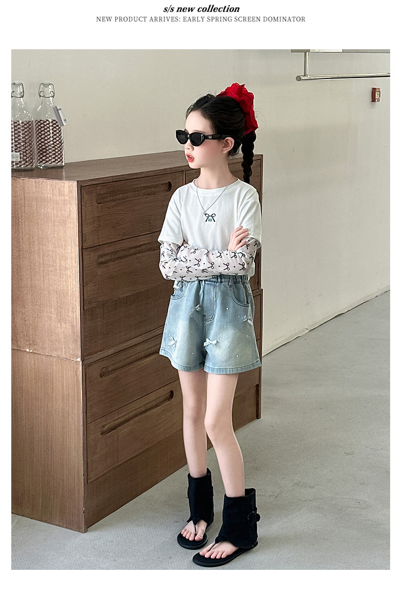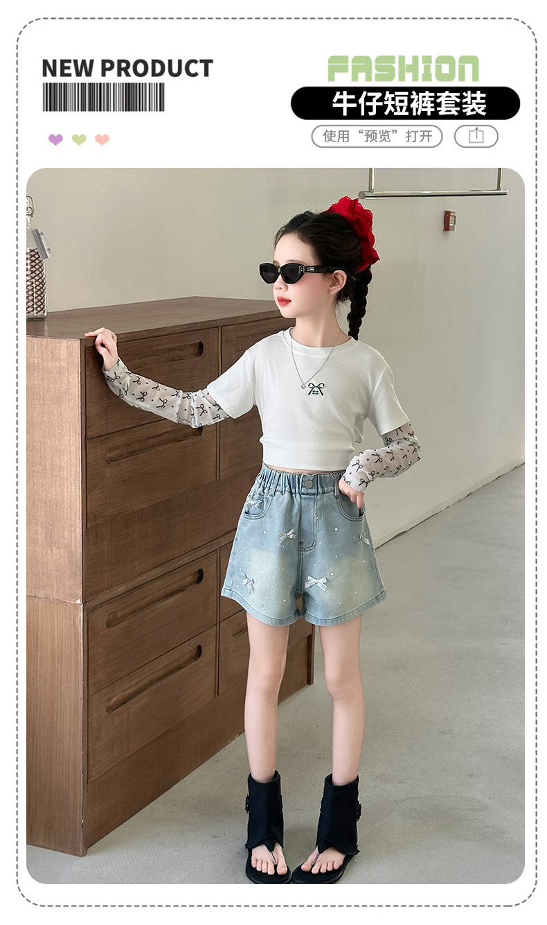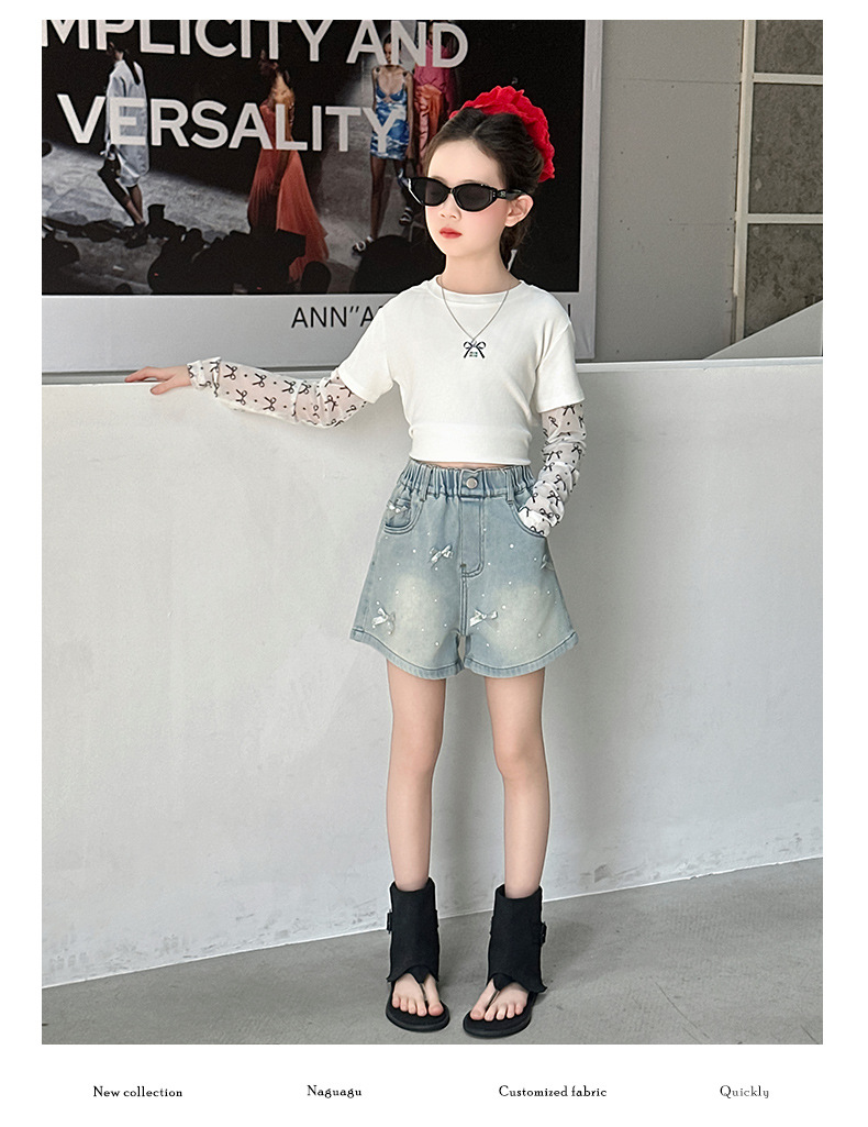 여름 중다 소녀 데님 반바지 아동복 새 소녀의 활 조각 데님 반바지 맞춤형 트렌디스토어 가기