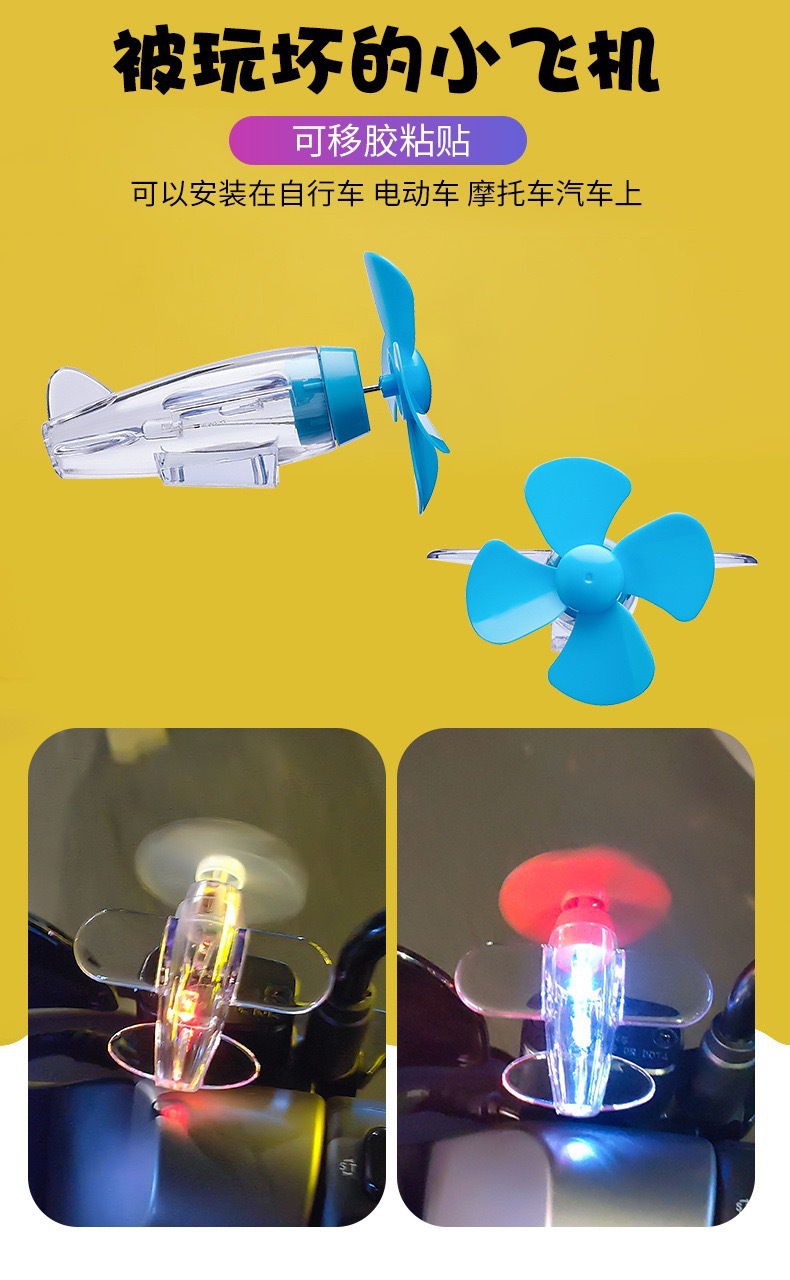 크리 에이 티브 전기 자동차 오토바이 장식품 풍력 발광 소형 항공기 LED 밝은 빛 헬멧 장식 자동차