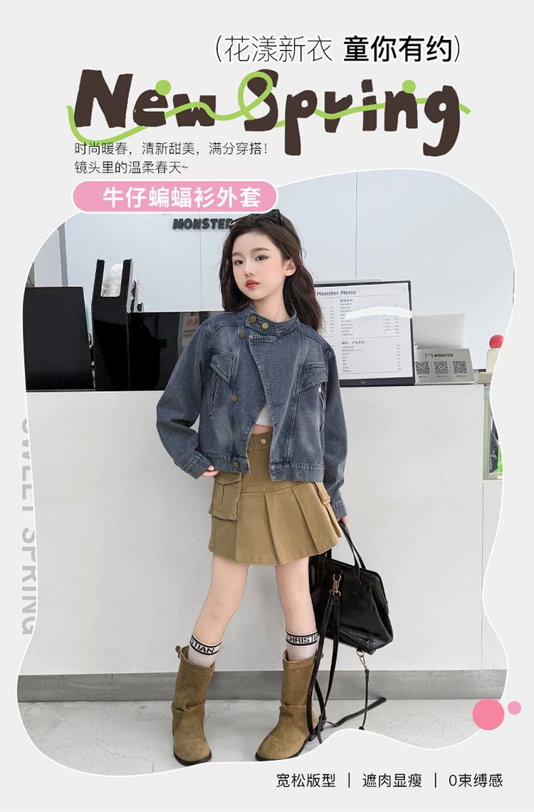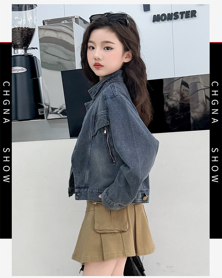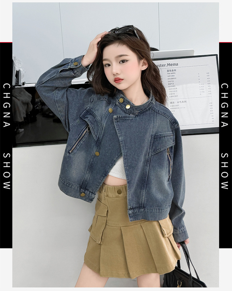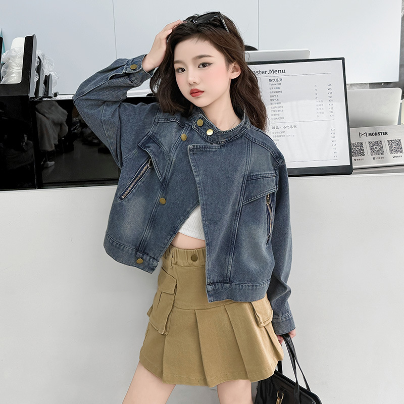 여아 패셔너블 데님 재킷 2025 봄, 가을 새로운 스타일 아동 데님 탑 중대형 아동 데님 재킷스토어 가기