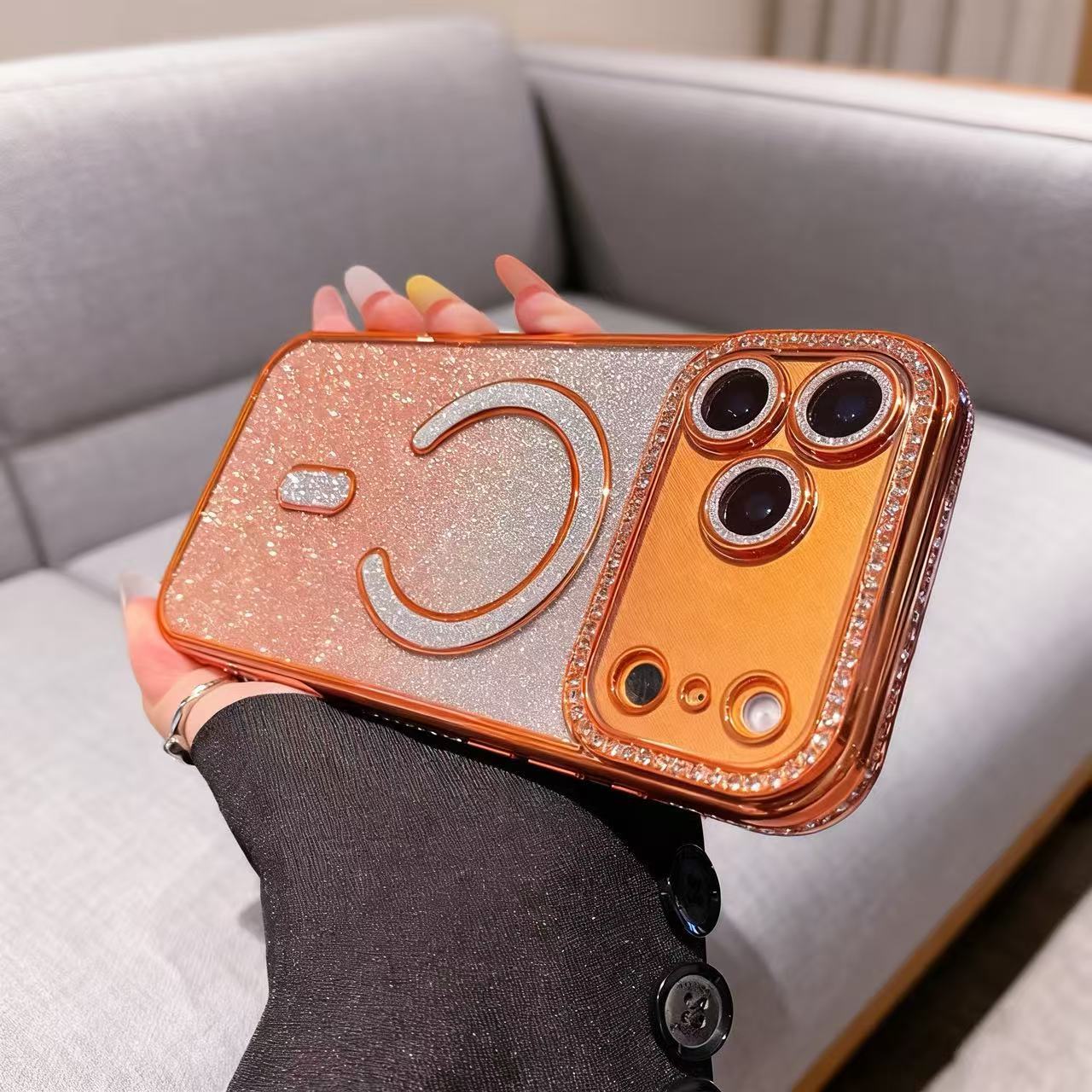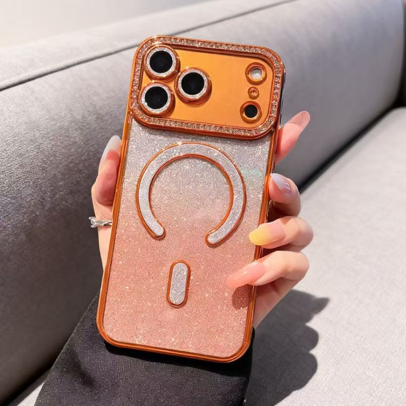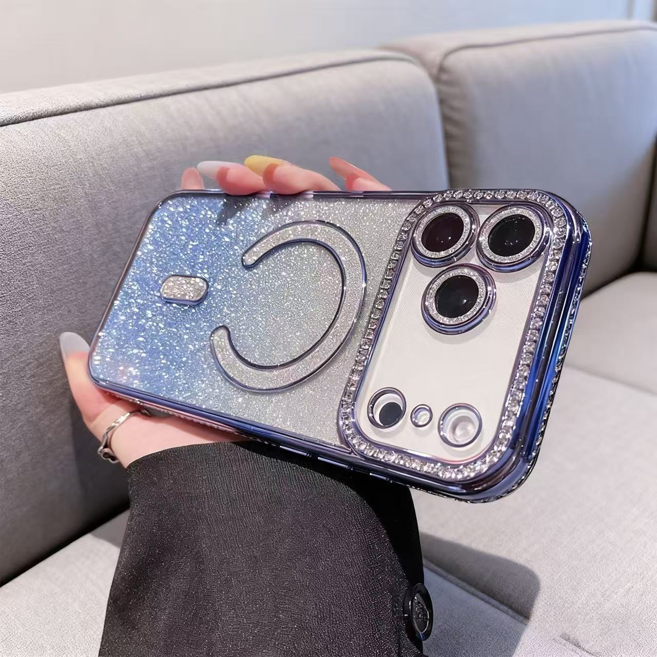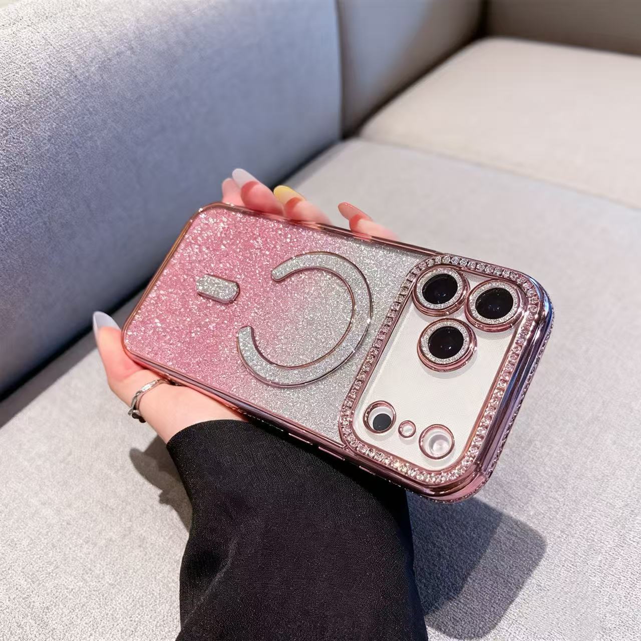아이폰17 플래시 다이아몬드 자석 휴대폰 케이스, 애플 16 그라데이션 글리터 15 프로 맥스 낙하 방지 보호 케이스