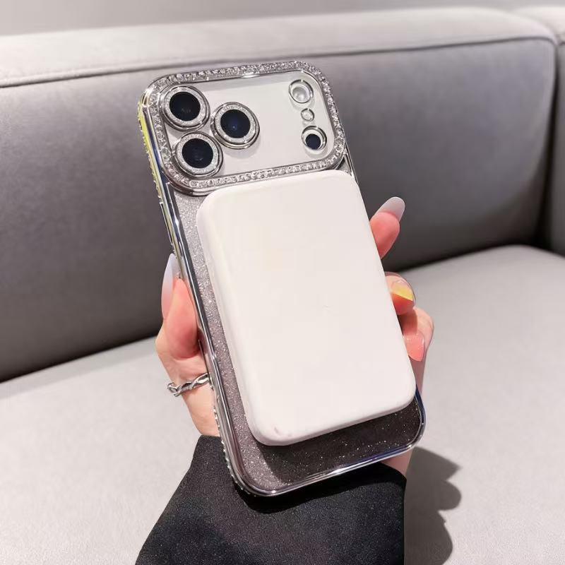 • [실버] 사이드 다이아몬드 마그네틱 흡입으로 무선 충전 가능 + 그라데이션 글리터 + 글리터 및 투명