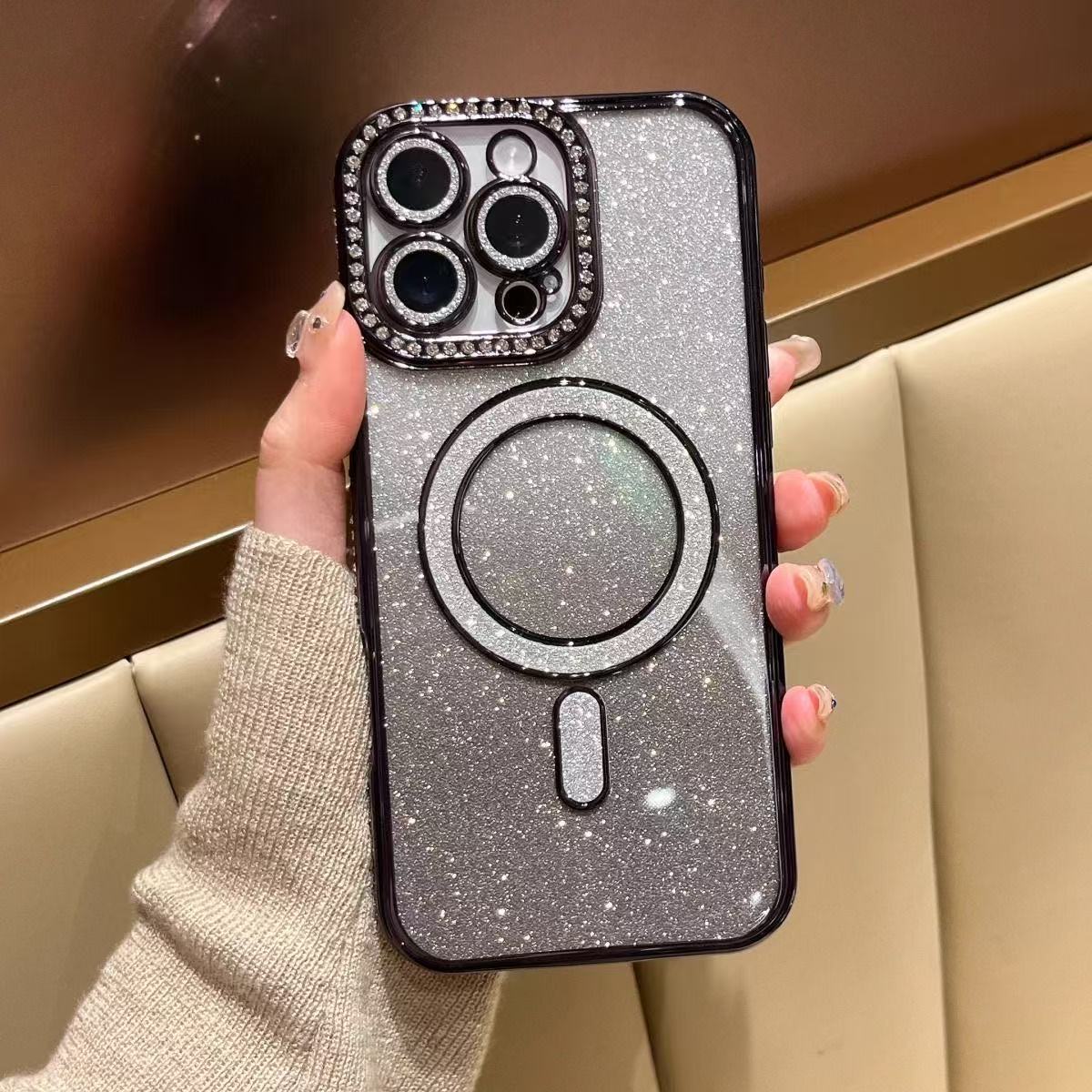 • [블랙] 사이드 다이아몬드 마그네틱 무선 충전 + 그라데이션 글리터 + 글리터 및 투명