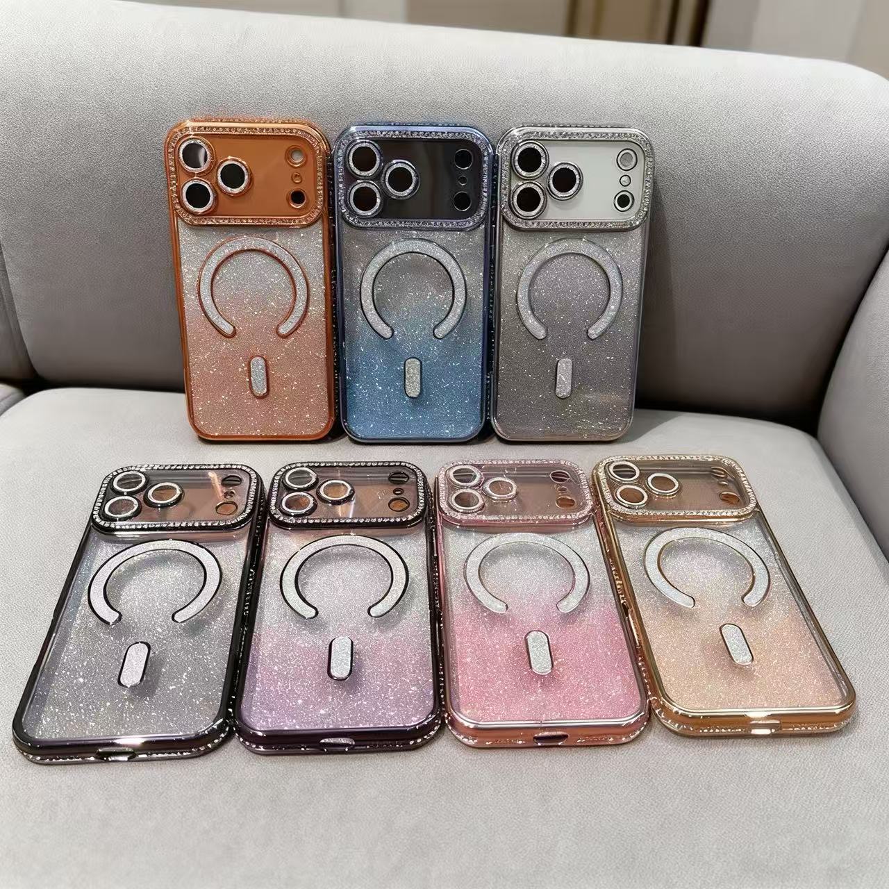 아이폰17 플래시 다이아몬드 자석 휴대폰 케이스, 애플 16 그라데이션 글리터 15 프로 맥스 낙하 방지 보호 케이스스토어 가기