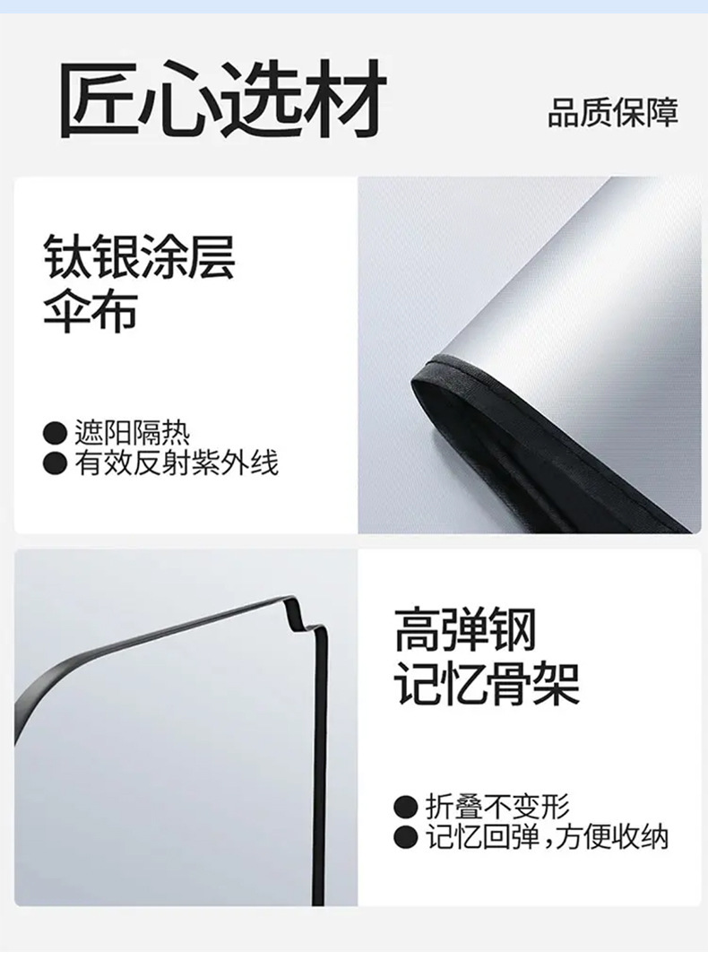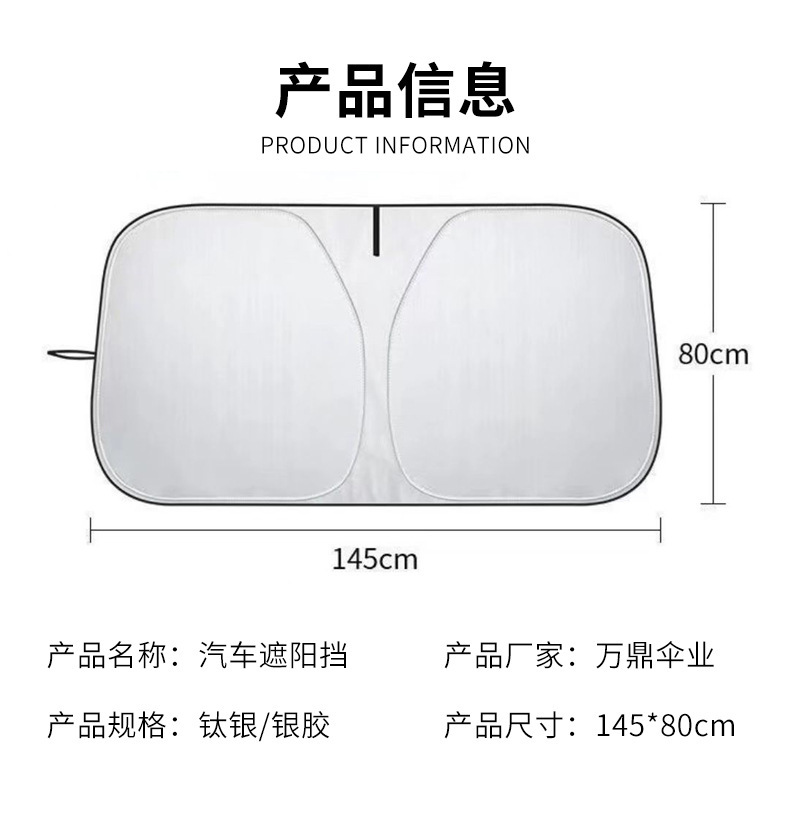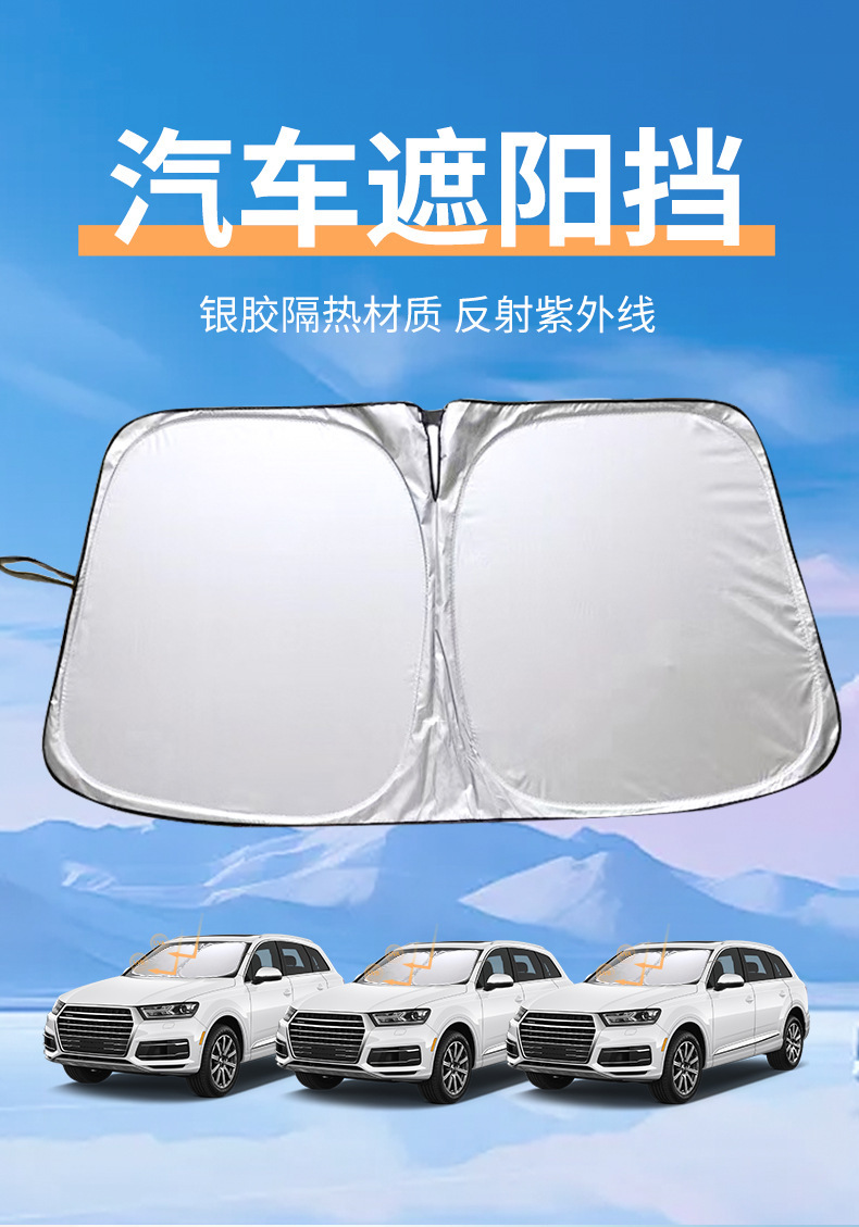 뜨거운 판매 자동차 태양 바이저 전면 방패 단열 선 스크린 코팅 실버 천 더블 링 태양 커튼 접이식 보관 배플