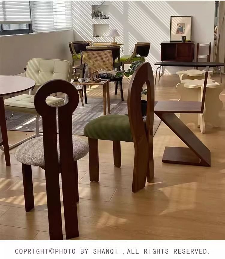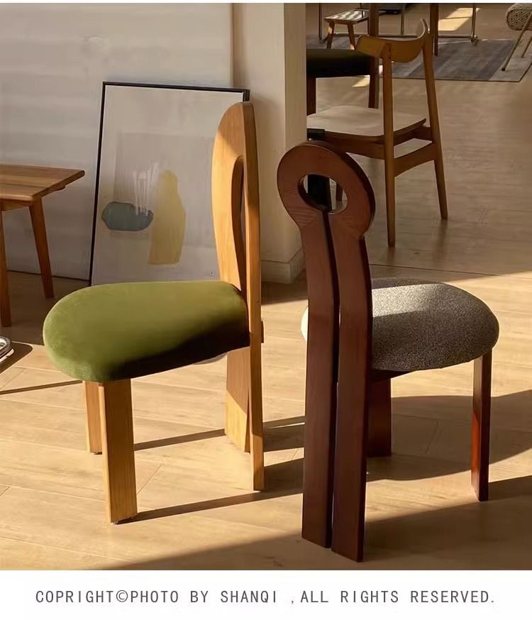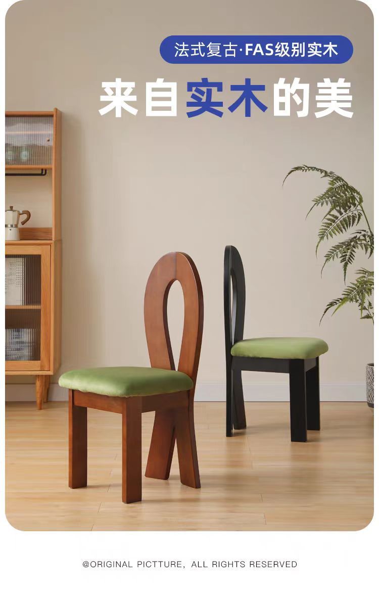 프랑스 복고풍 인어 의자 라이트 럭셔리 노르딕 솔리드 우드 사일런트 스타일 다이닝 의자 거실 등받이 간단한 중동 고대 메이크업 의자