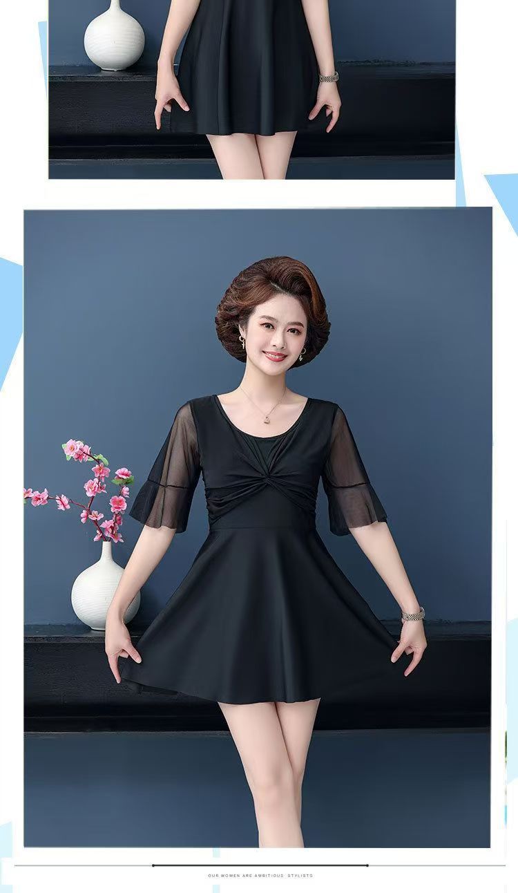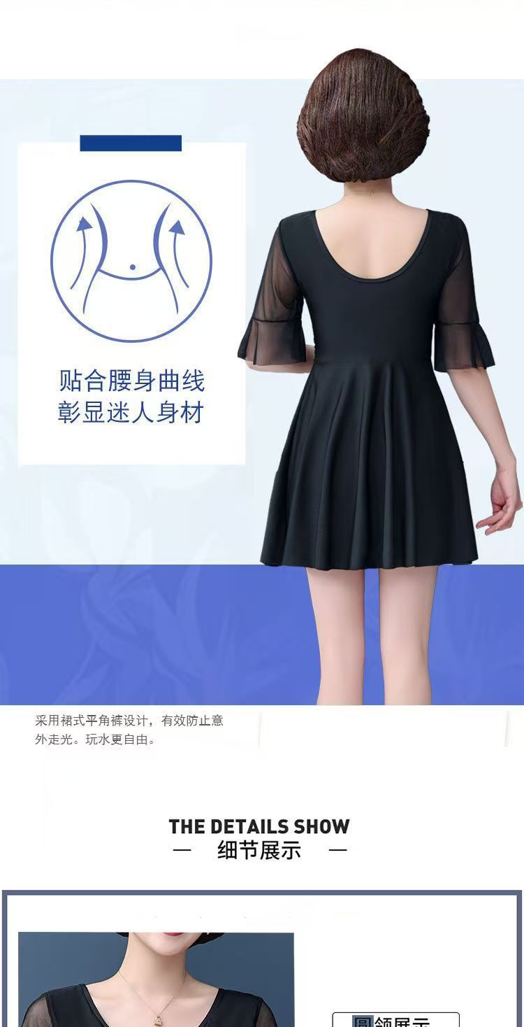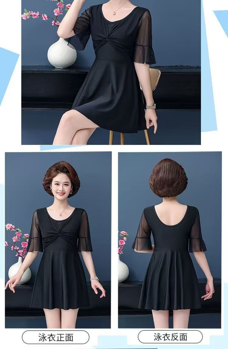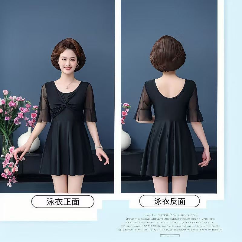 2025 새로운 중년 및 노인 수영복 여성 배꼽 플러스 사이즈 슬리밍 보수 연합 치마 온천 어머니 수영복스토어 가기
