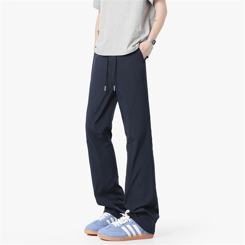 인기 아이스 실크 마이크로 플레어 팬츠, 신상 여름 얇은 속건성 3방수 팬츠, 홍콩 스타일 캐주얼 팬츠, 남성용 에어컨 팬츠