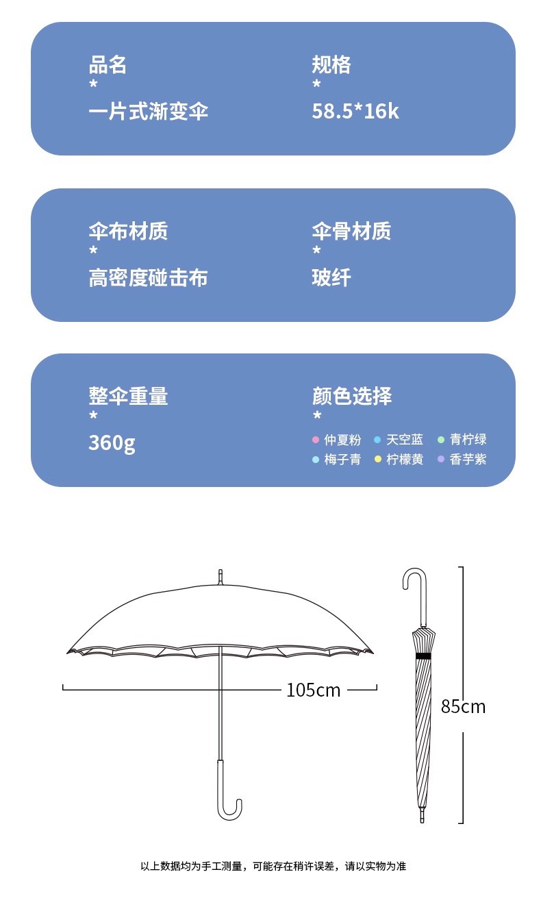 점진적 변화 한 조각 긴 손잡이 우산은 소녀 높은 색 가치 폭풍우 특별 증가 강화 농축 바람 저항 매뉴얼 새지 않습니다
