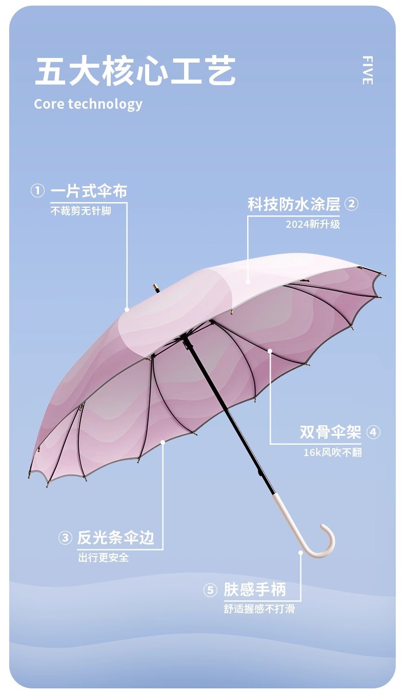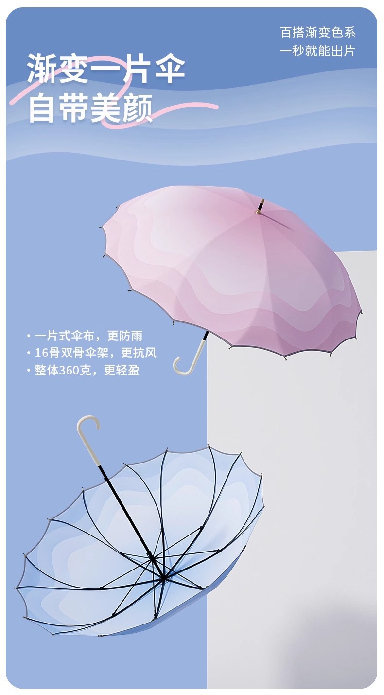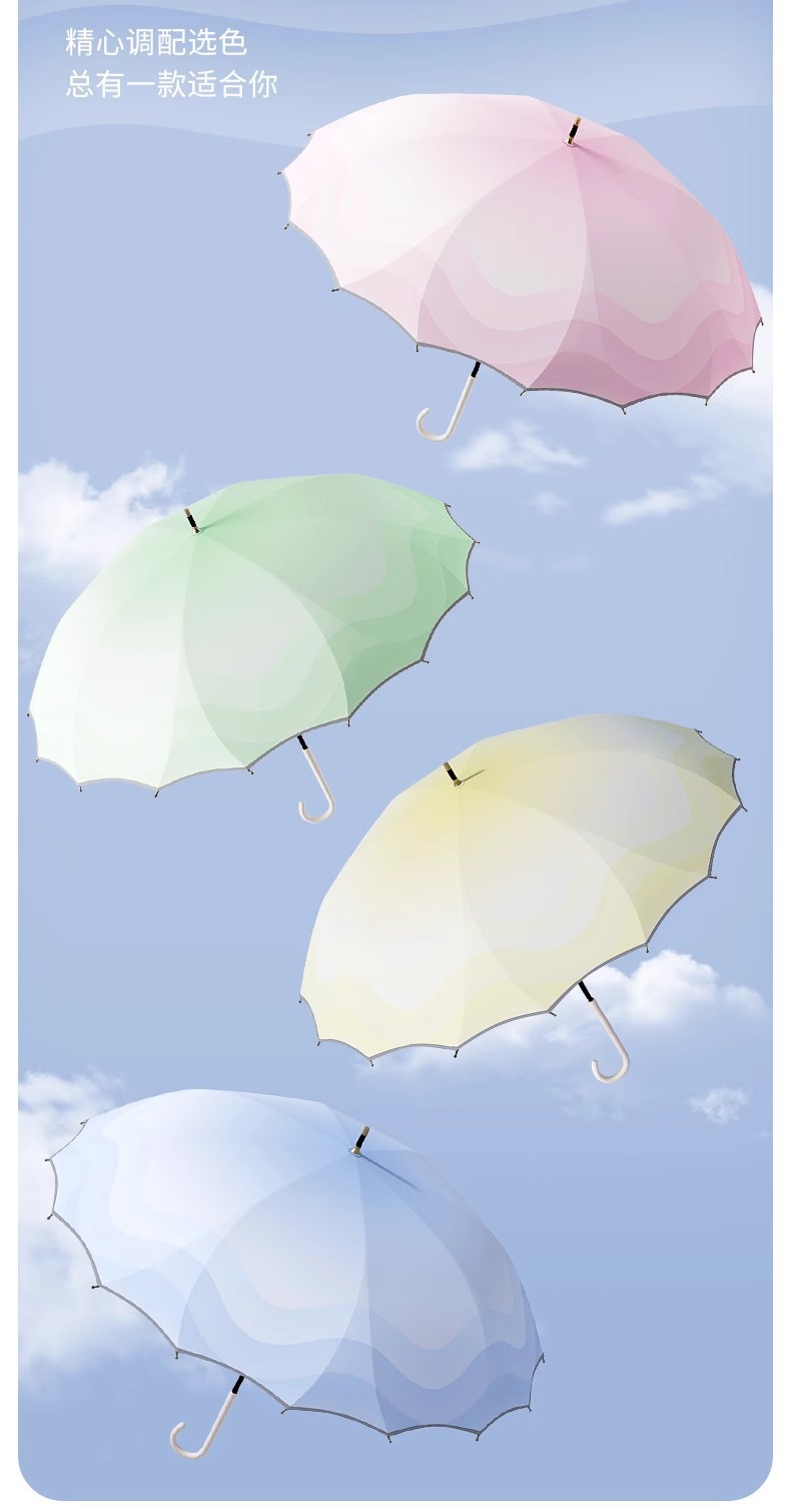 점진적 변화 한 조각 긴 손잡이 우산은 소녀 높은 색 가치 폭풍우 특별 증가 강화 농축 바람 저항 매뉴얼 새지 않습니다스토어 가기