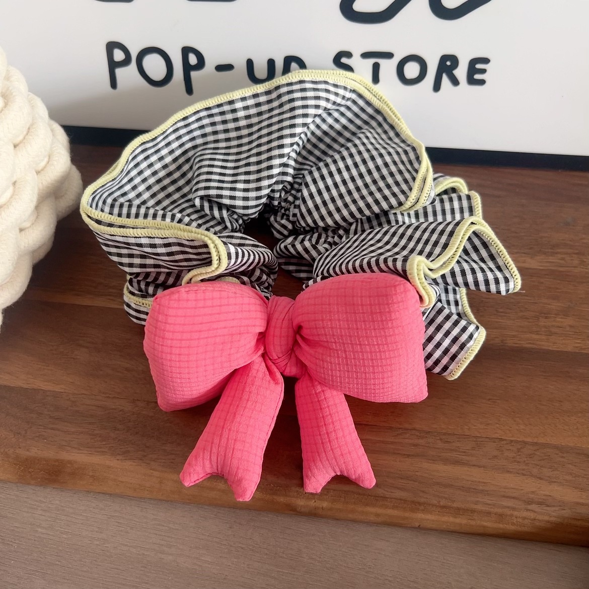 한국식 새로운 3 차원 면 활 버튼 격자 무늬 헤어 링 절묘한 고급 스타일 포니 테일 헤어 링 여성용 헤어 액세서리