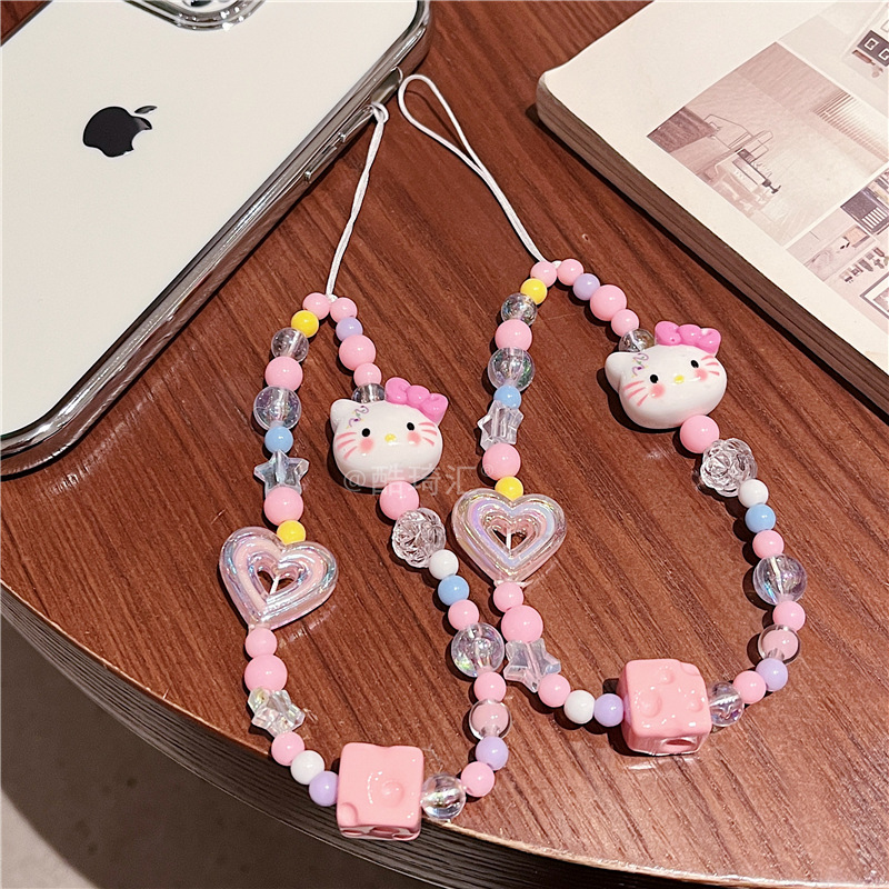 만화 구슬 kt 고양이 핑크 휴대 전화 체인 ccd 카메라 체인 diy 소녀 심장 치즈 상자 구슬 안티 손실 로프