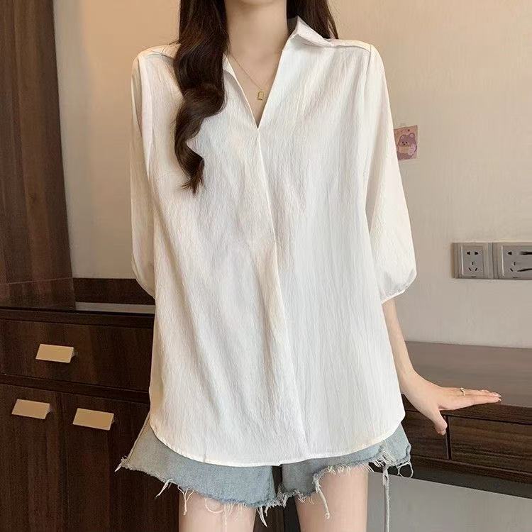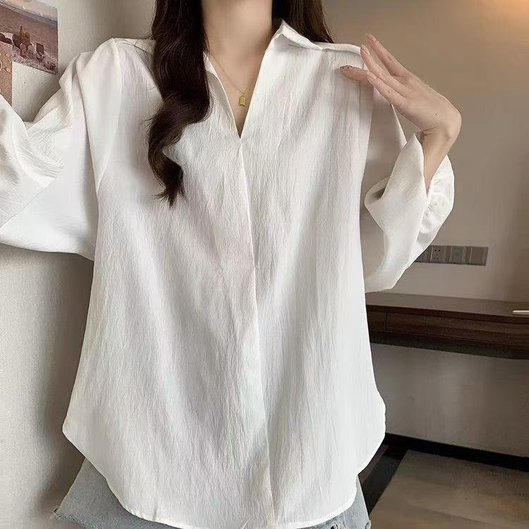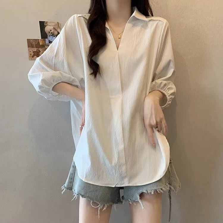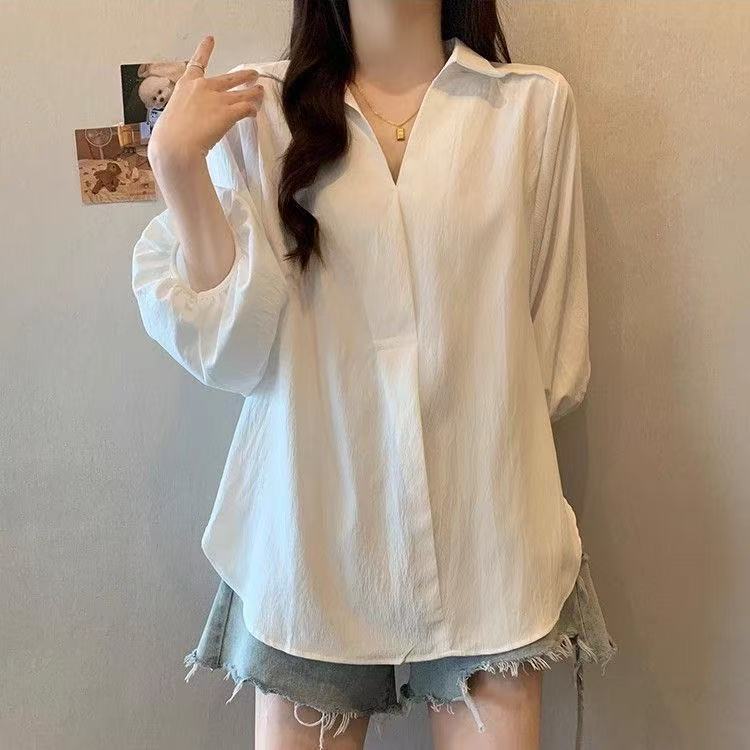 플러스 사이즈 2025 봄과 여름 화이트 느슨한 우아한 새로운 올 매치 칼라 셔츠 젊은 디자인 슬림 외부 셔츠스토어 가기