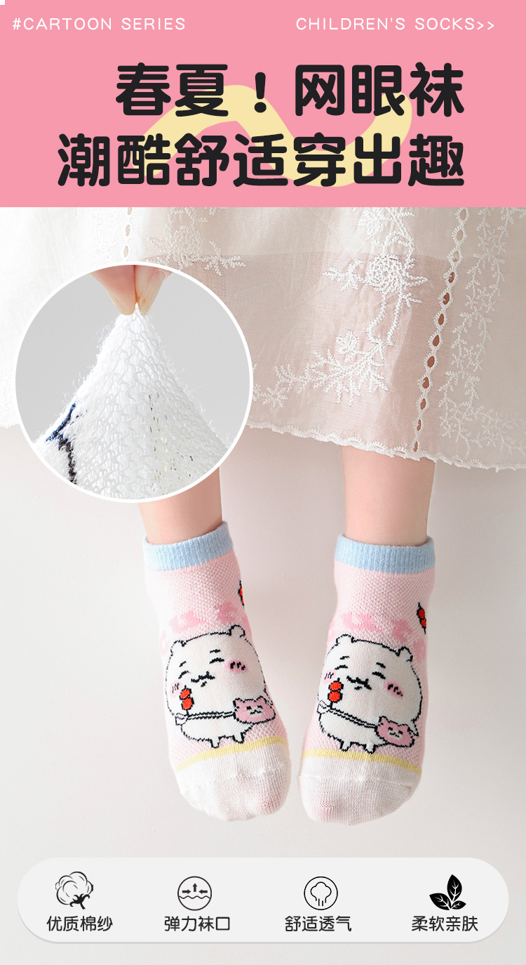 夏季防滑地板袜女童袜子卡通棉袜网眼透气儿童可爱童袜春夏季短袜