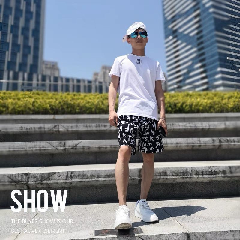 남성용 수영복 5부 속건성 비치 팬츠 대형 루즈한 당황스러운 문자 프린트 수영 팬츠 온천 휴가스토어 가기