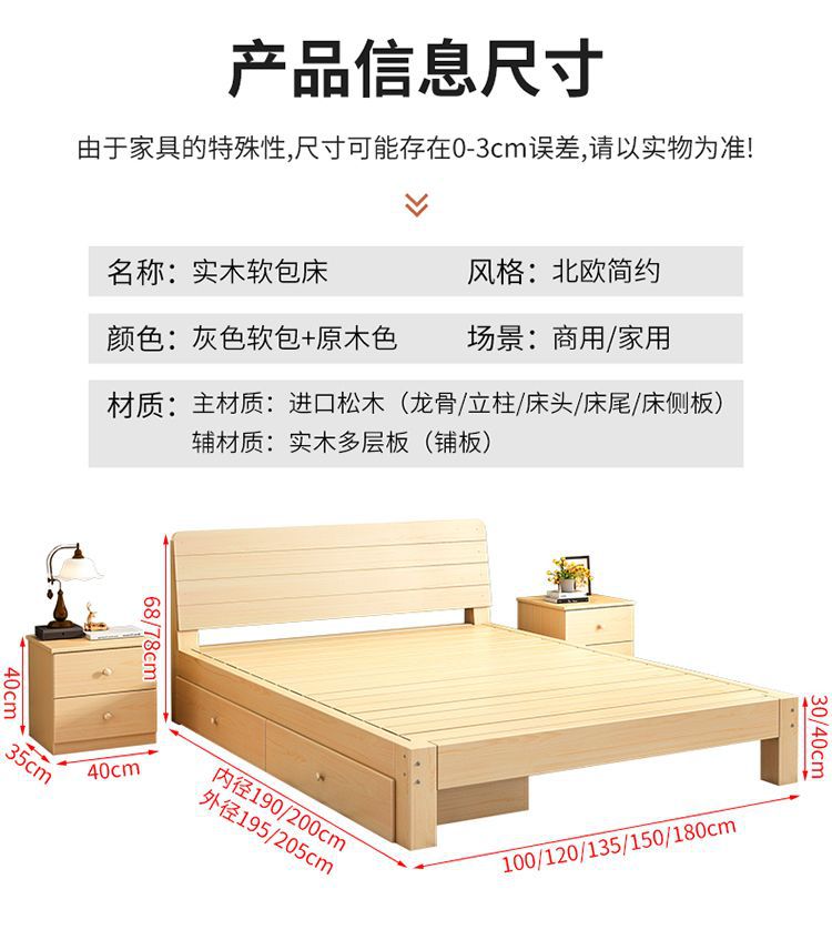 단단한 나무 침대 1.5 m 소나무 더블 침대 경제적 인 현대 간단한 1.8 m 임대 룸 간단한 싱글 침대 1.2m스토어 가기