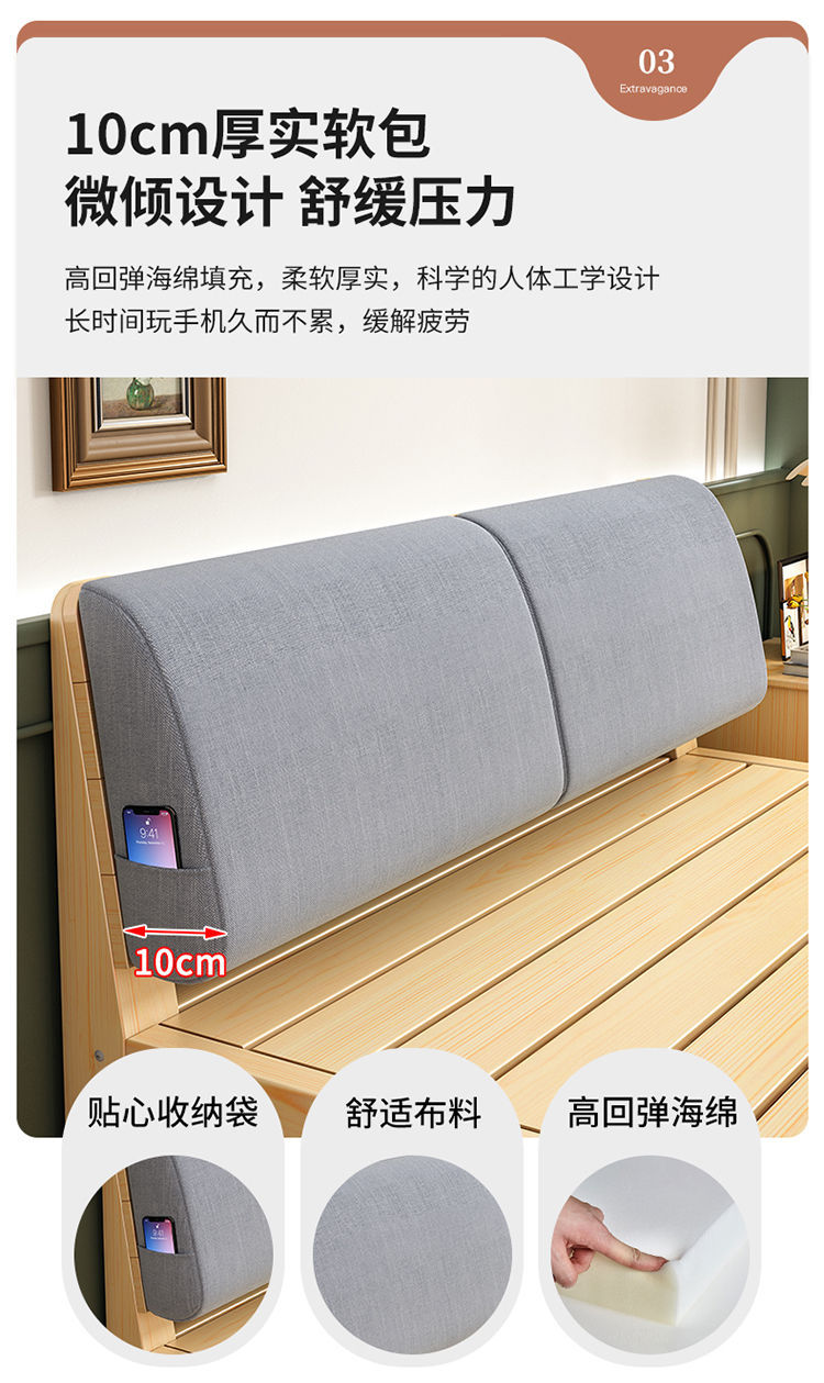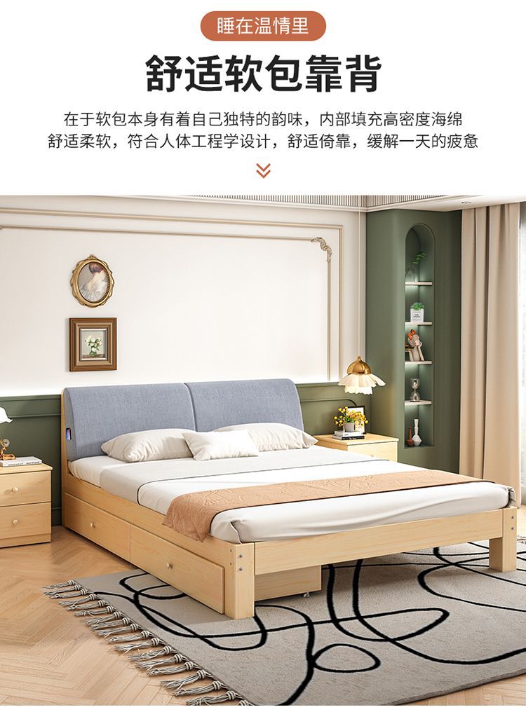 • /원목침대 높이 40cm + 서랍 + 매트리스 + 푹신한 등받이