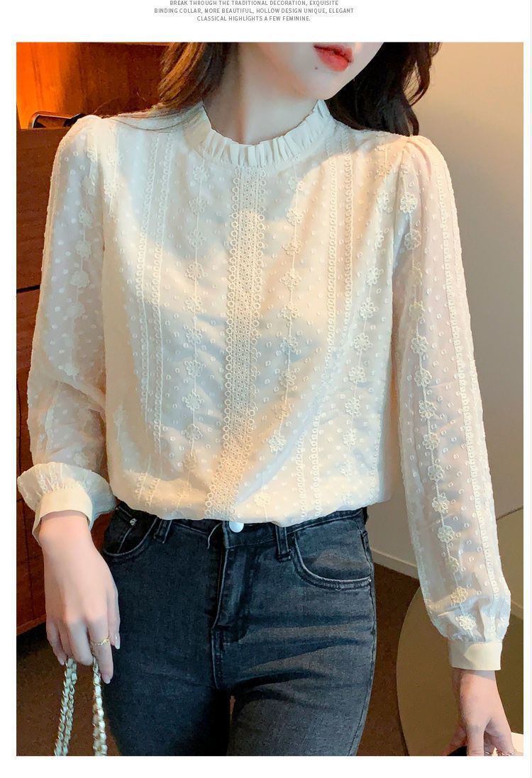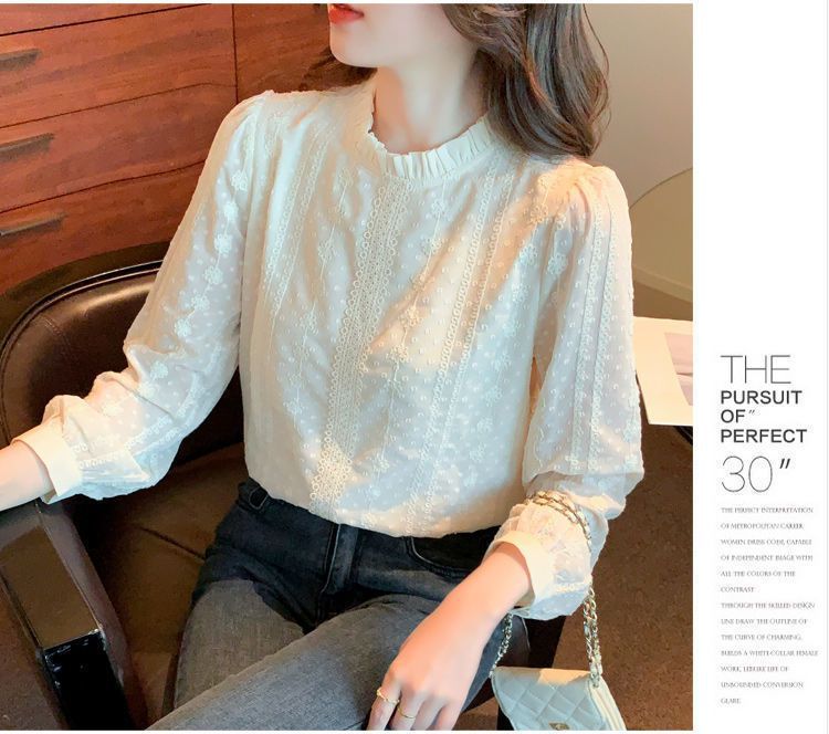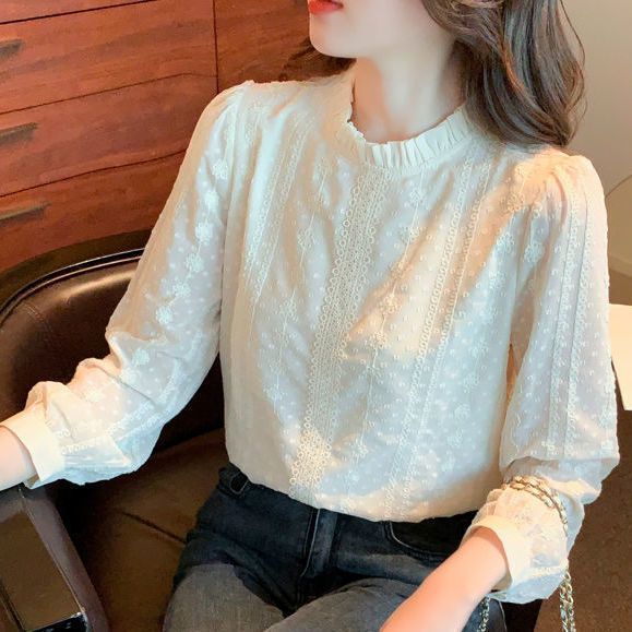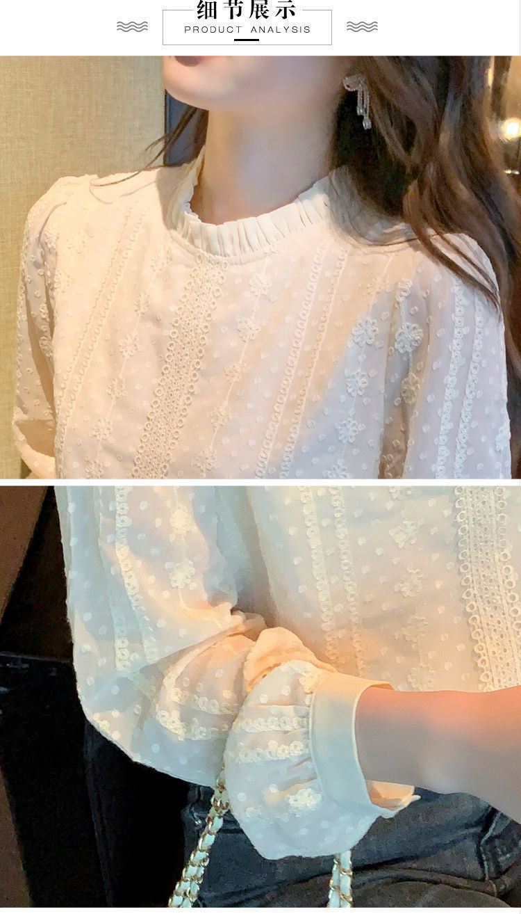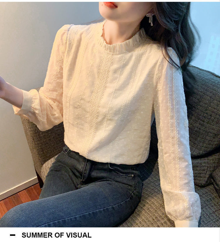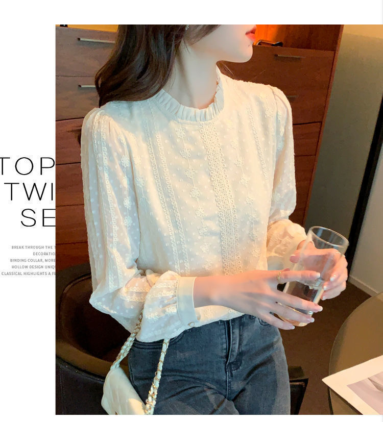 여성용 기질 레이스 밑단 셔츠, 패셔너블하고 스타일리쉬한 2025 신작 봄, 가을 긴 T-소매 탑 쉬폰 셔츠스토어 가기
