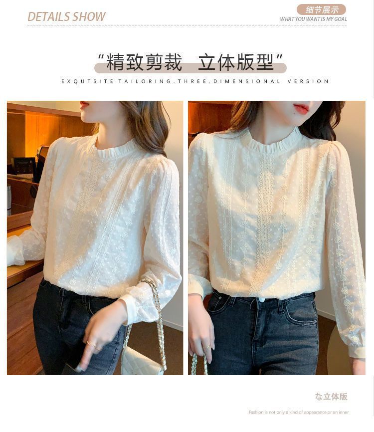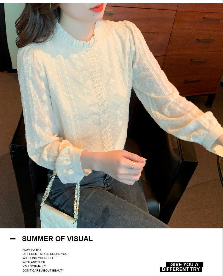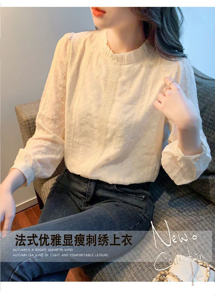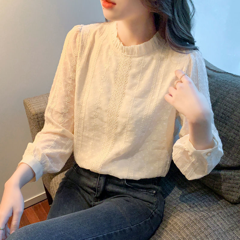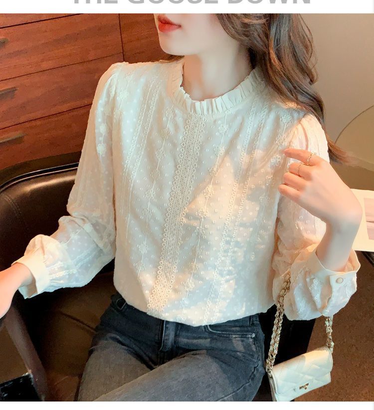 여성용 기질 레이스 밑단 셔츠, 패셔너블하고 스타일리쉬한 2025 신작 봄, 가을 긴 T-소매 탑 쉬폰 셔츠스토어 가기