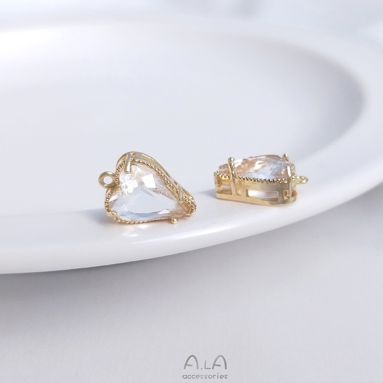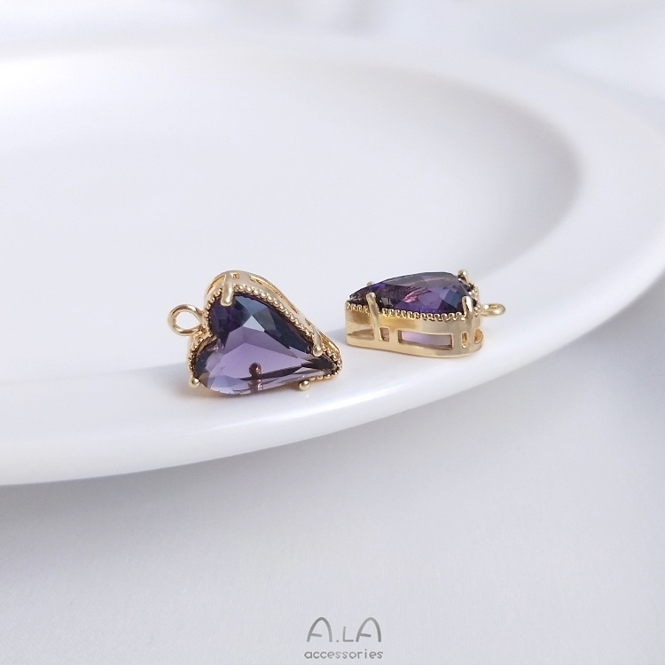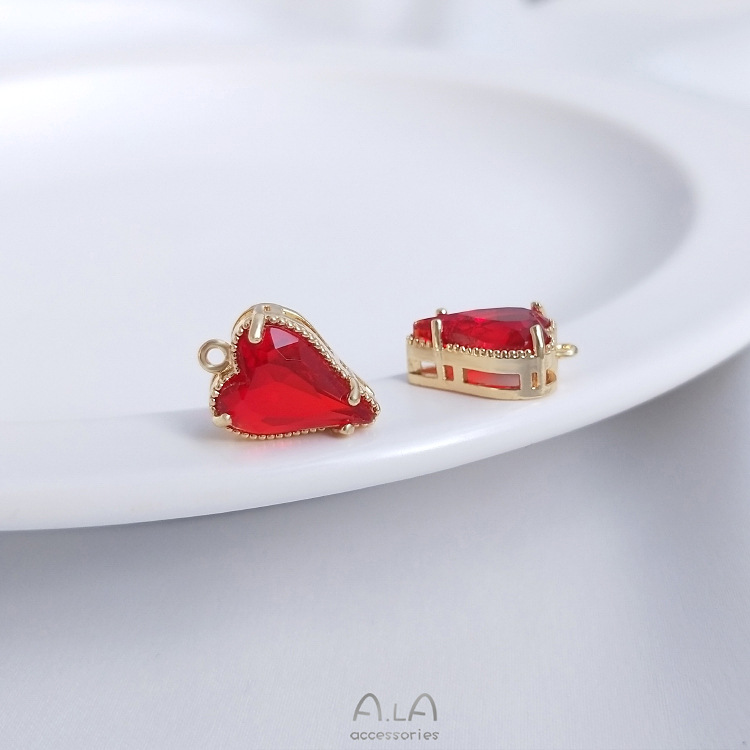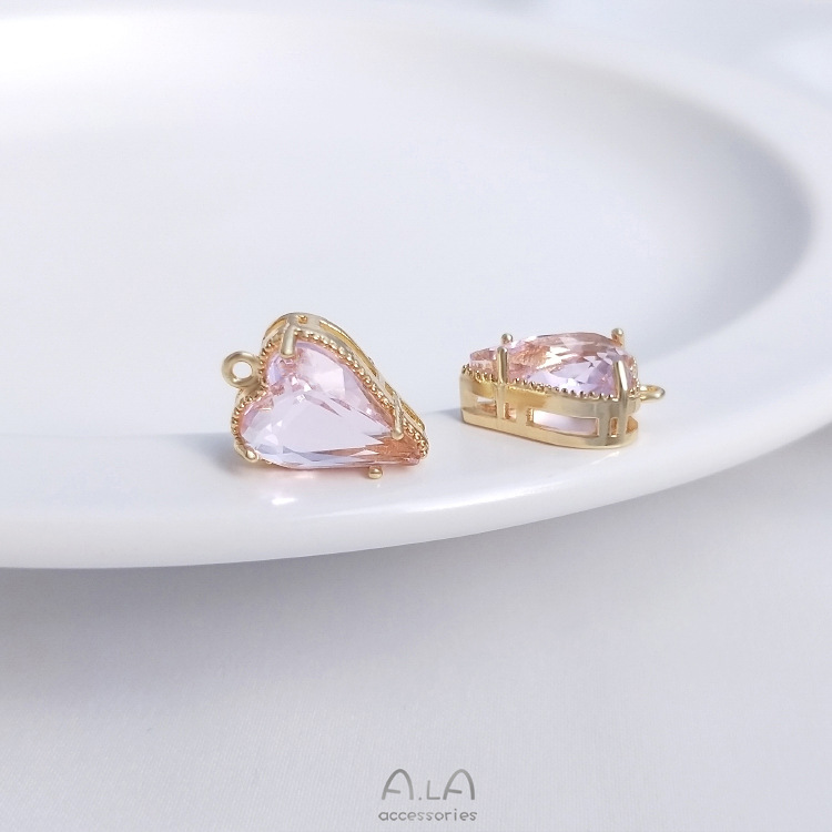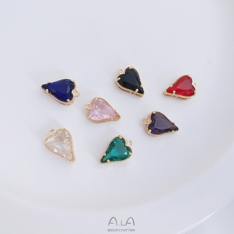14K 금도금 지르콘 하트 펜던트 컬러 크리스탈 지르콘 하트 펜던트 diy 목걸이 팔찌 귀걸이 펜던트