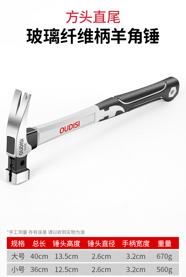 • [10OZ 스퀘어 헤드] 플래그십 섬유 손잡이 클로 해머 [인터넷 연예인 홀 모델]
