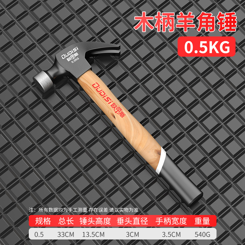 • [고품질] 삼색 나무 손잡이 클로 해머 0.5KG