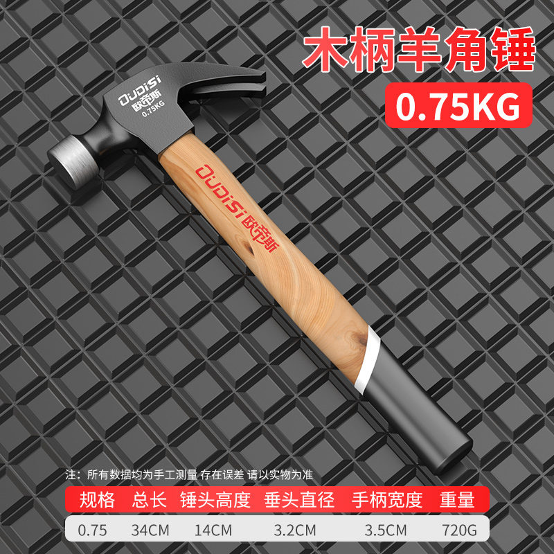 • [고품질] 삼색 나무 손잡이 클로 해머 0.75KG