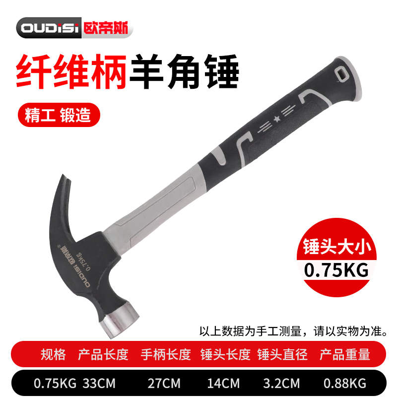 • [고품질] 블랙 워리어 섬유 손잡이 클로 해머 0.75KG