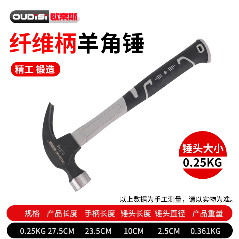 • [고품질] 블랙 워리어 섬유 손잡이 클로 해머 0.25KG
