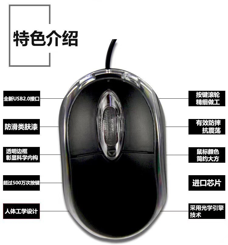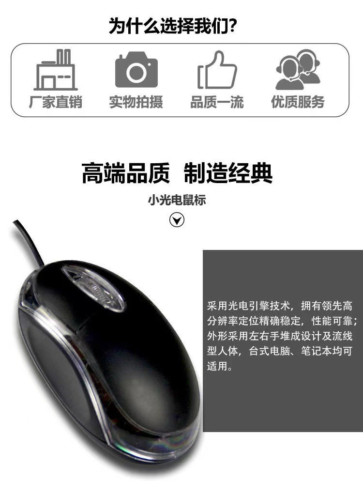 유선 작은 광학 마우스 데스크탑 노트북 사무실 가정용 컴퓨터 게임 USB 유선 마우스 플라스틱 패키지