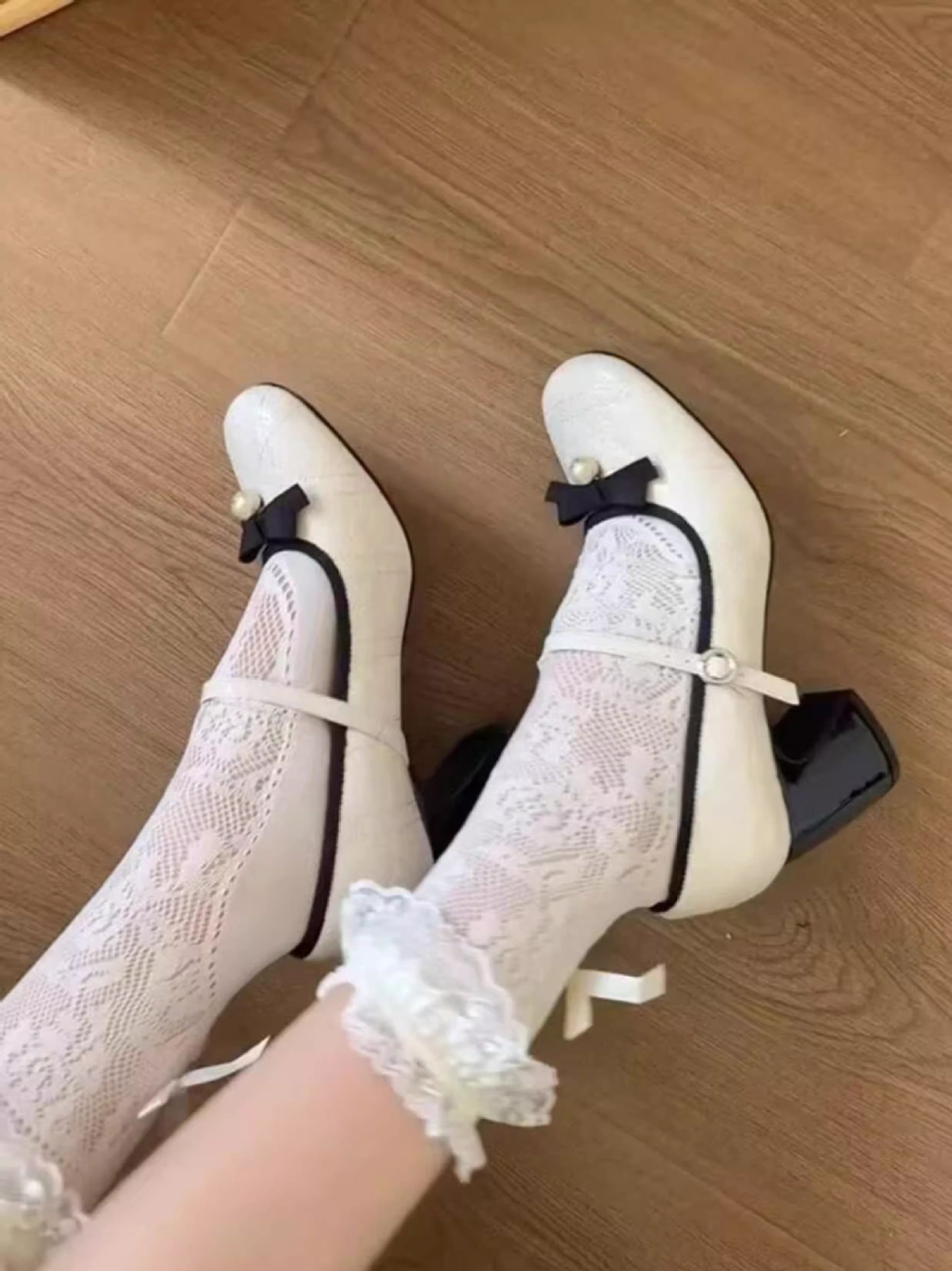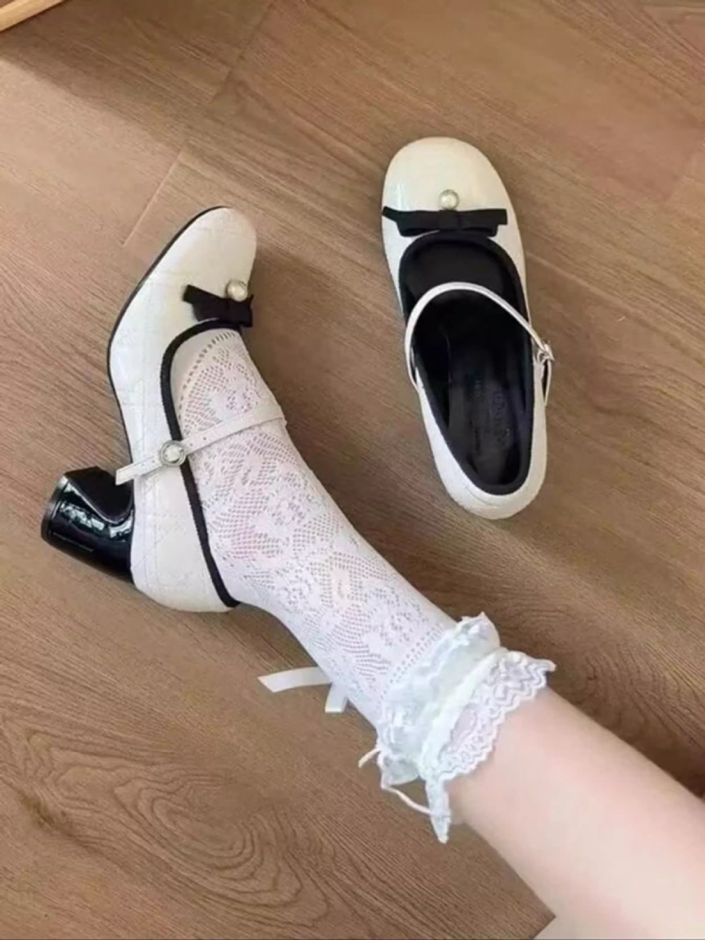 3773 프랑스 특허 가죽 활 두꺼운 힐 메리 제인 신발 여성의 2025 새로운 요정 스타일 작은 얕은 입 신발스토어 가기