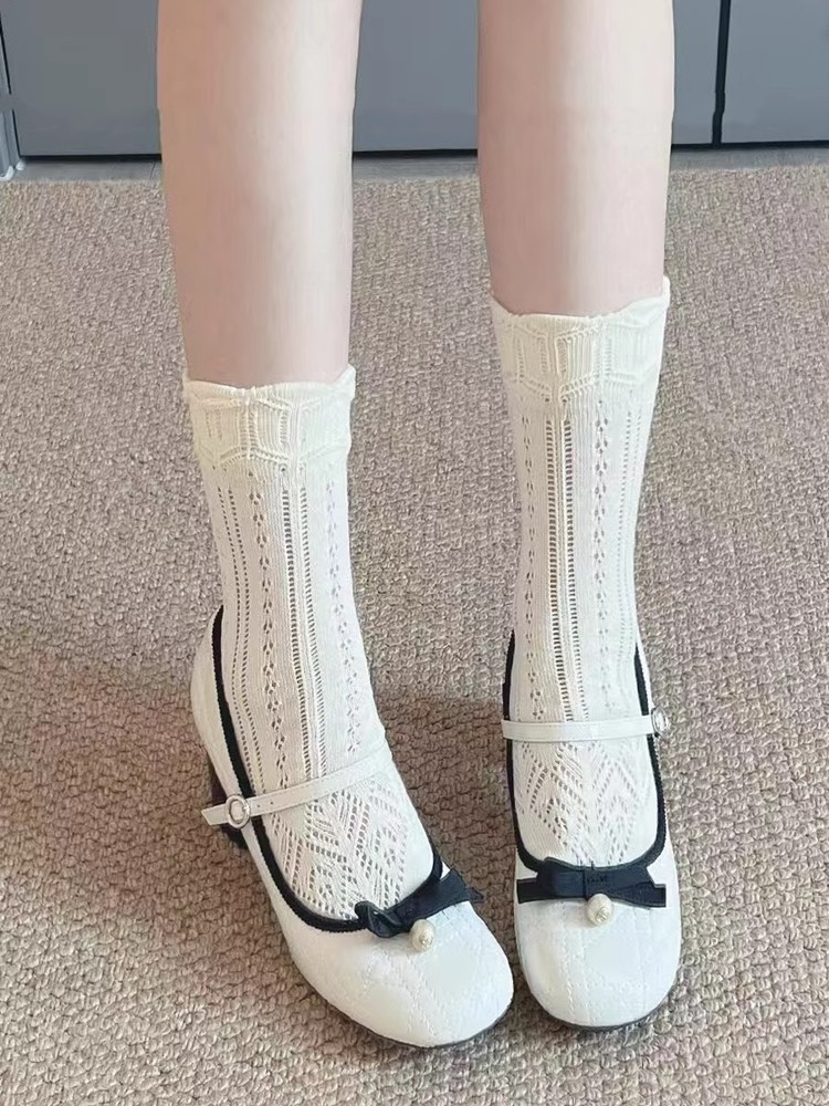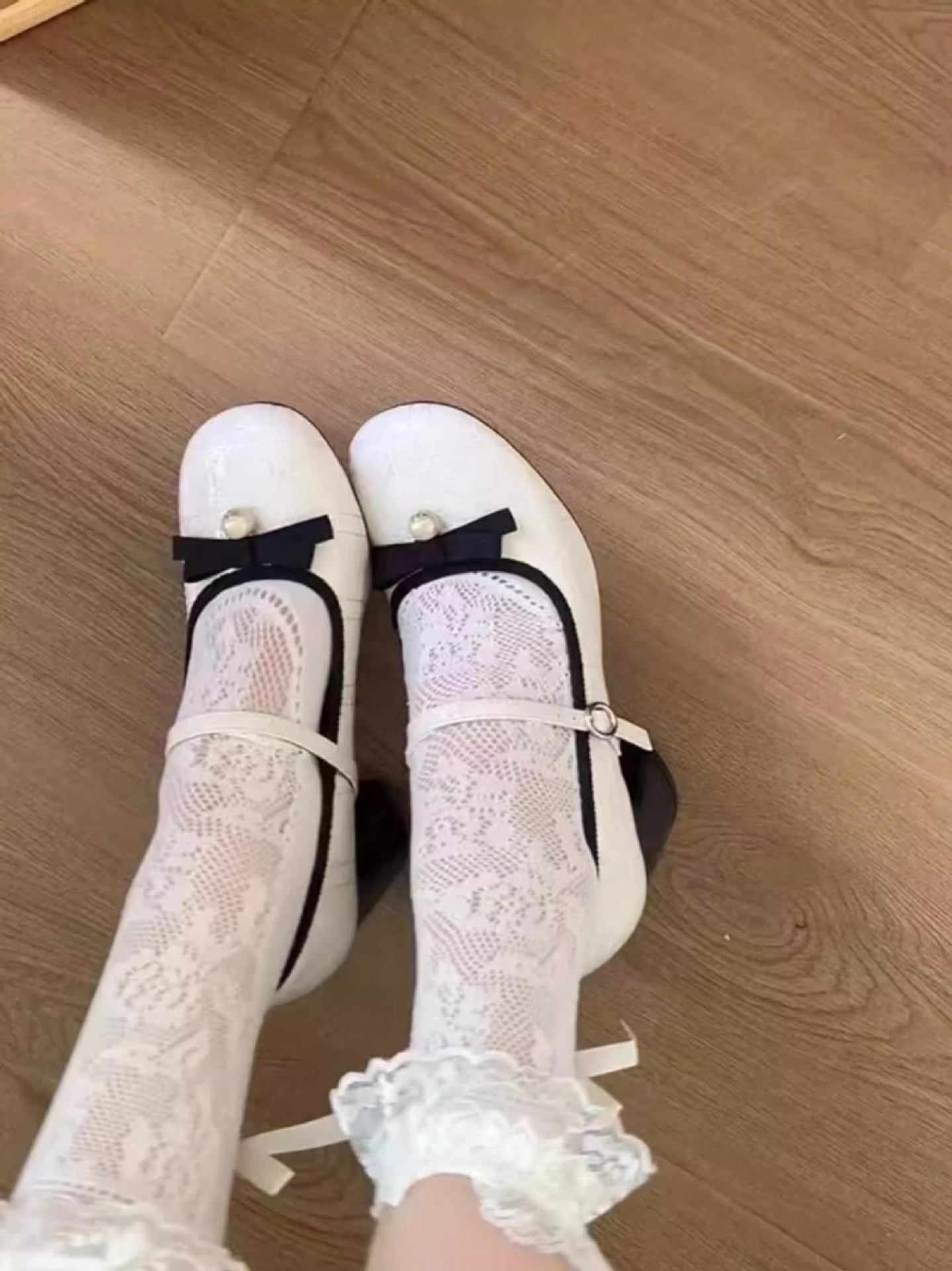 3773 프랑스 특허 가죽 활 두꺼운 힐 메리 제인 신발 여성의 2025 새로운 요정 스타일 작은 얕은 입 신발