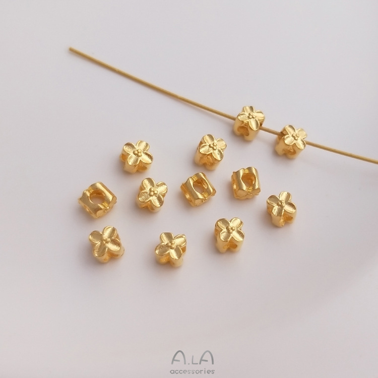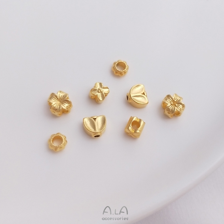 강력한 색상 유지력 샌드 골드 DIY 액세서리 큰 구멍 호박 비즈 네잎 클로버 꽃 모양의 비즈 DIY 땋은 빨간색 로프 팔찌 비즈스토어 가기