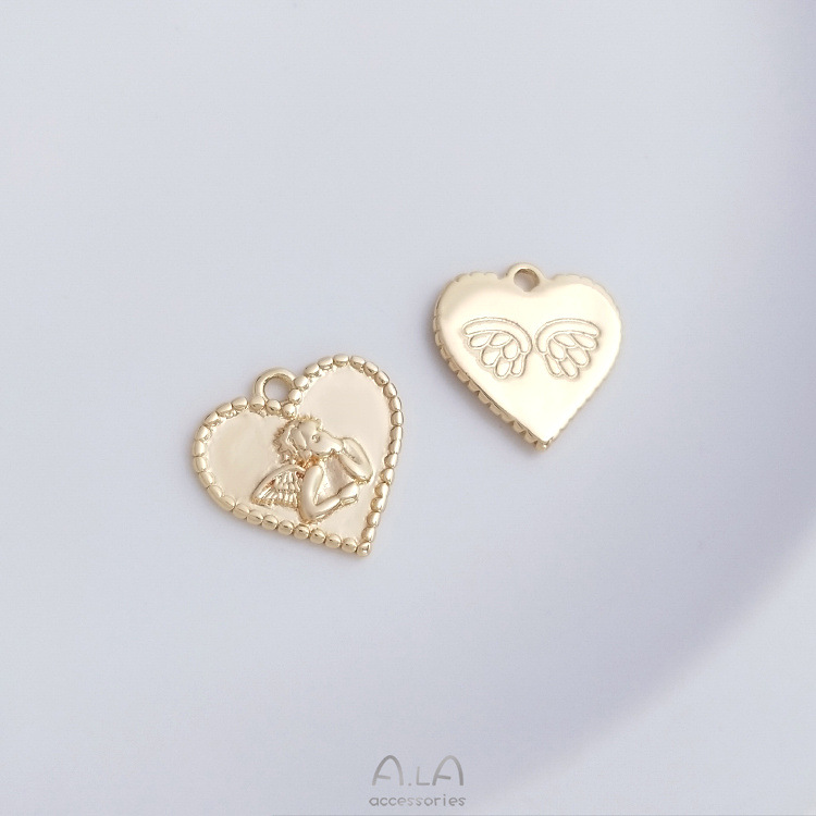 14K 금으로 채워진 색상 보존 천사 복숭아 하트 모양의 펜던트 사랑 천사 태그 diy 수제 팔찌 목걸이 쥬얼리 펜던트스토어 가기