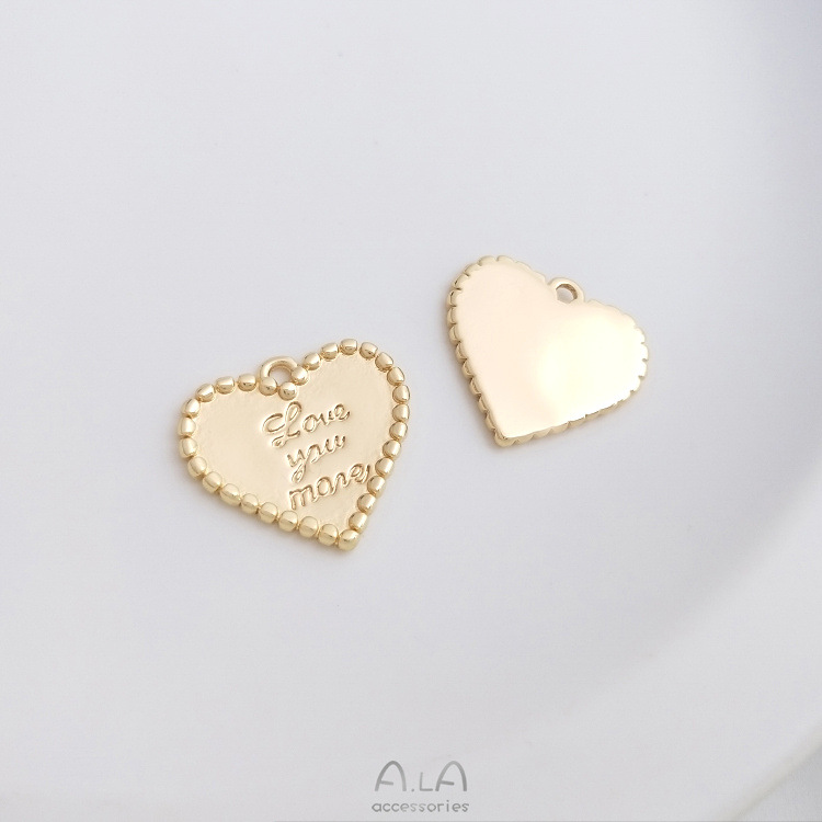 14K 금으로 채워진 색상 보존 천사 복숭아 하트 모양의 펜던트 사랑 천사 태그 diy 수제 팔찌 목걸이 쥬얼리 펜던트
