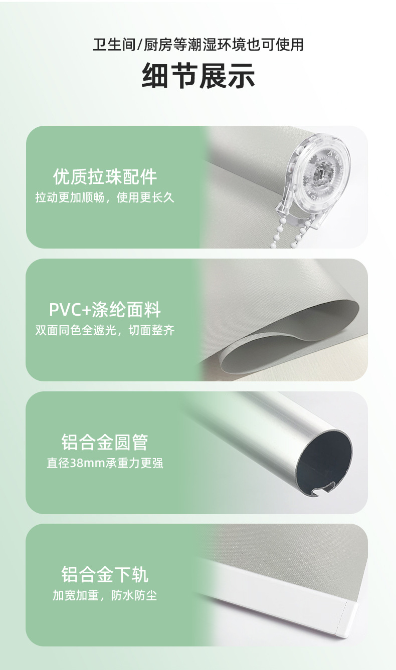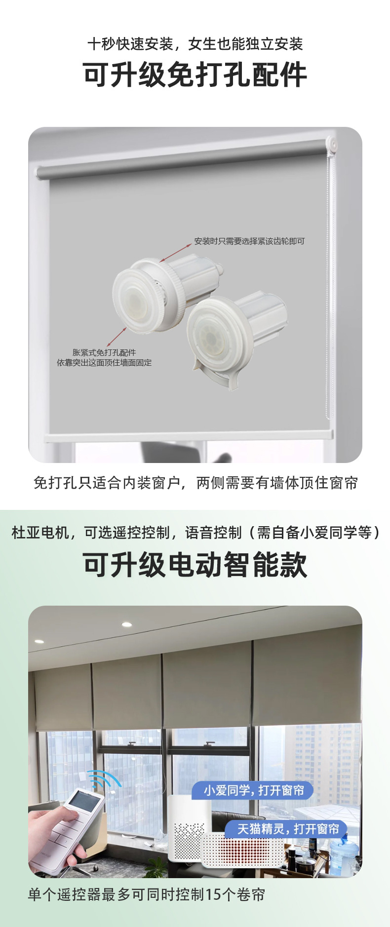 방수 롤러 블라인드 제조업체는 주방, 욕실, 화장실 커튼, 차양 롤러 블라인드를 펀칭하지 않고 완전 암막 전기 커튼을 만들 수 있습니다.