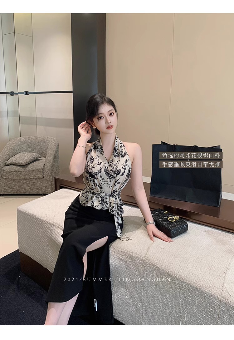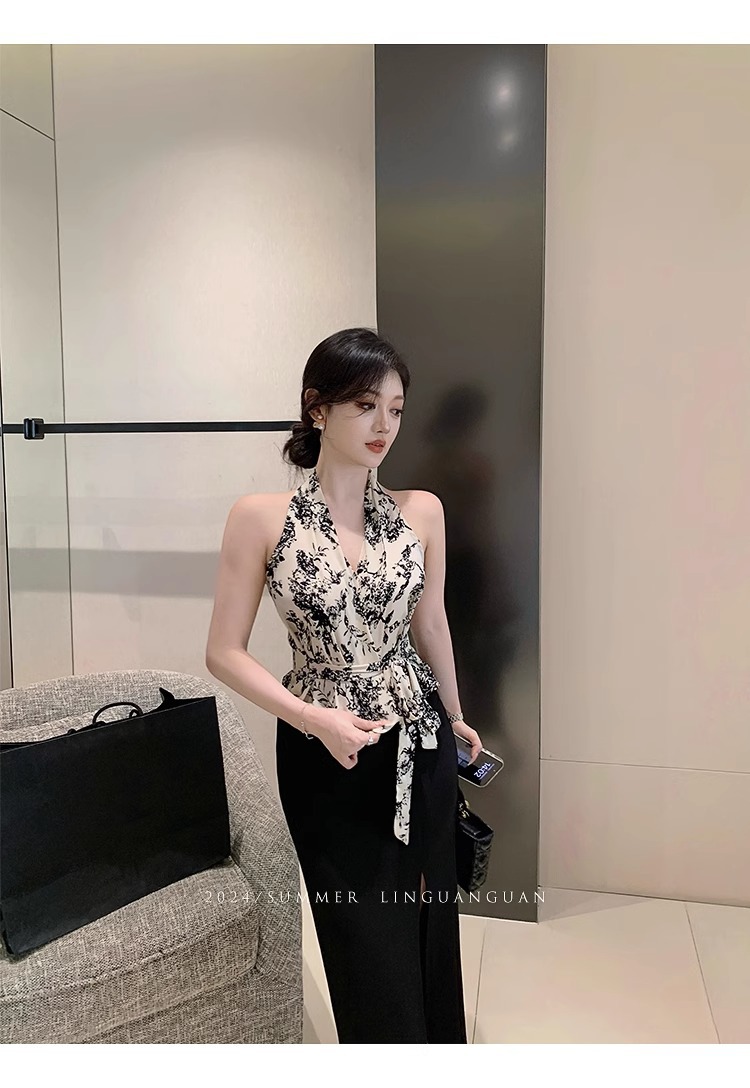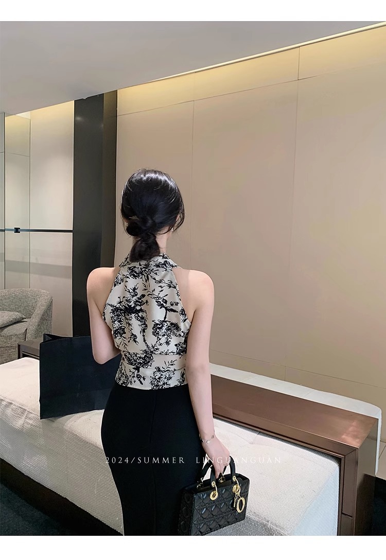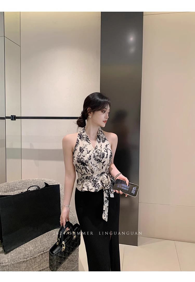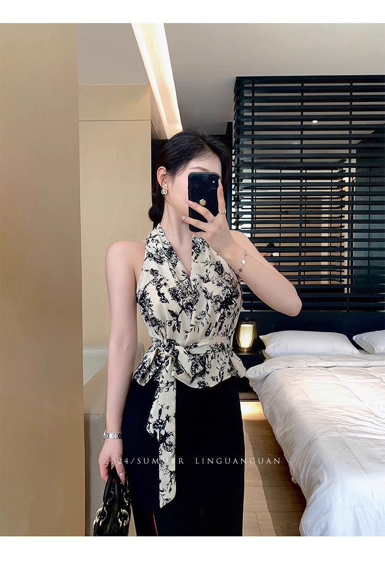 공식 그림 실제 가격 민소매 목 꽃 조끼 여성 디자인 센스 니쉬 프랑스 세련된 아름다운 여름 탑스토어 가기