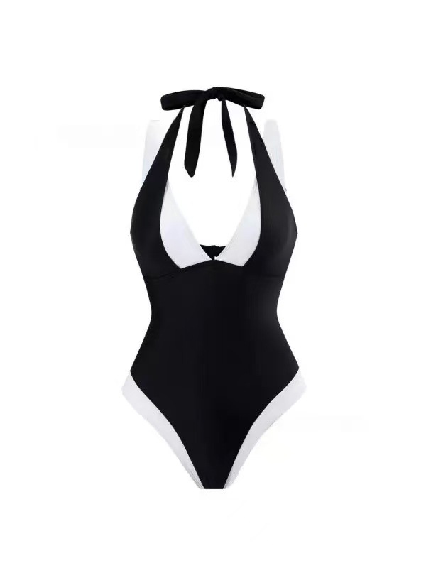 2025 유럽과 미국의 원피스 섹시한 딥 V 수영복 크로스보더 아마존 살을 커버하고 슬리밍 해변 휴가 온천 수영복 여성용스토어 가기