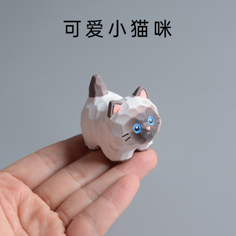 만화 고양이 검은 고양이 샴 고양이 나무 조각 바람 수지 고양이 장식품 인형 선물 사무실 책상 홈 장식스토어 가기