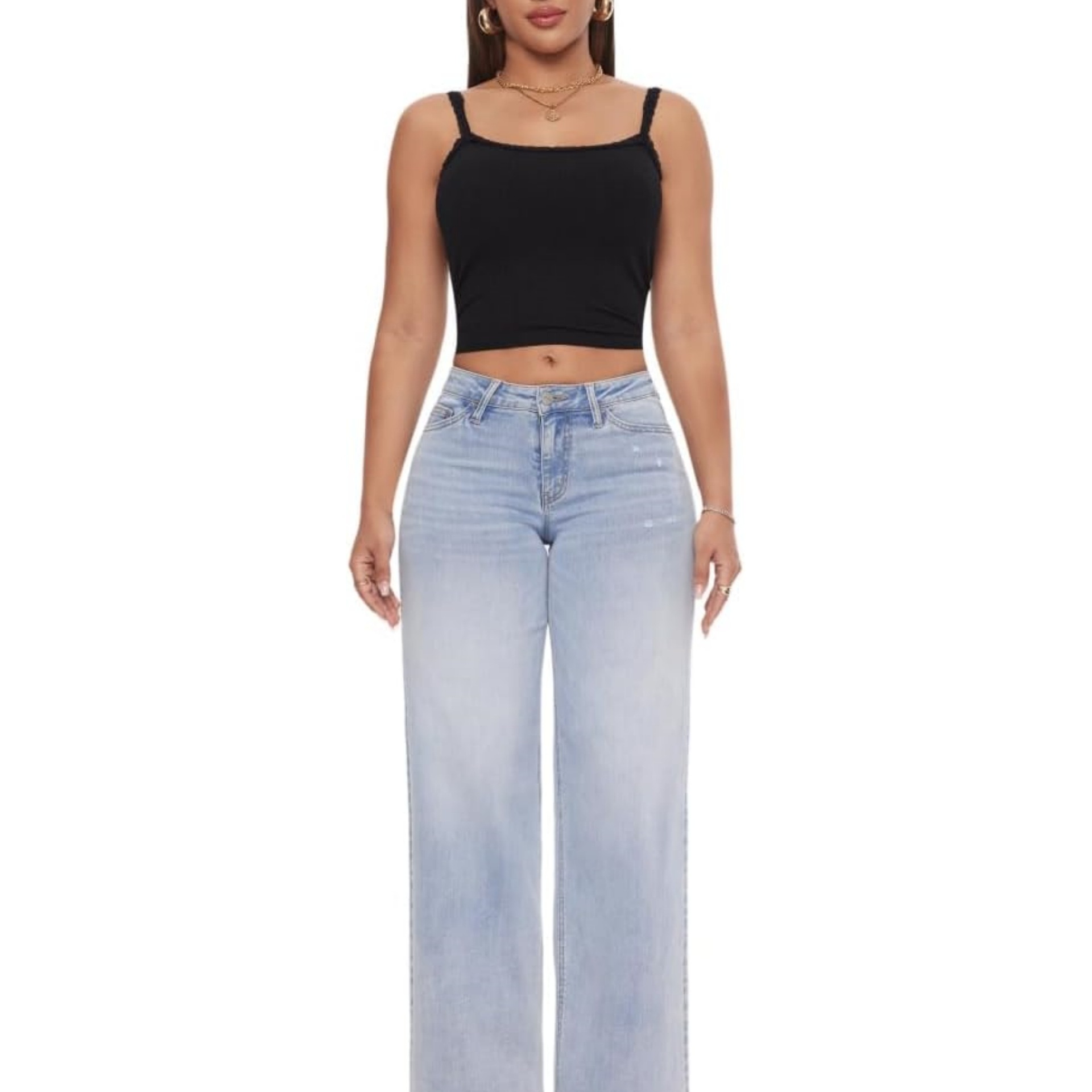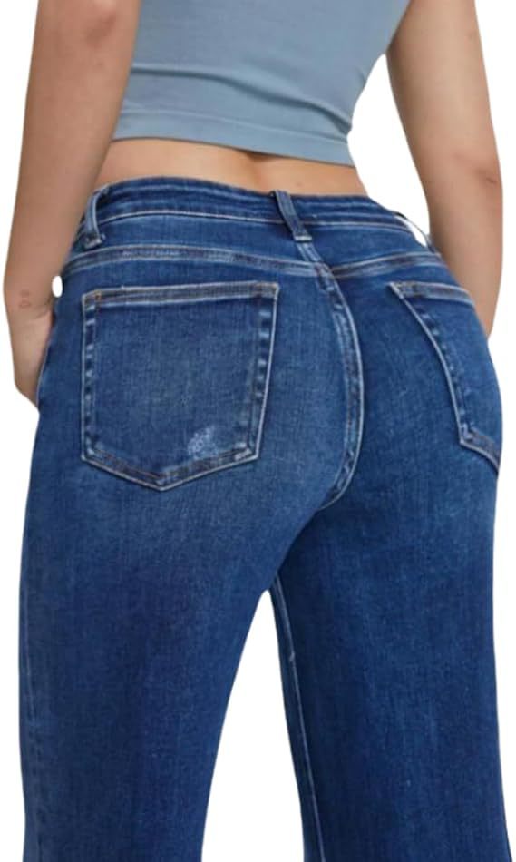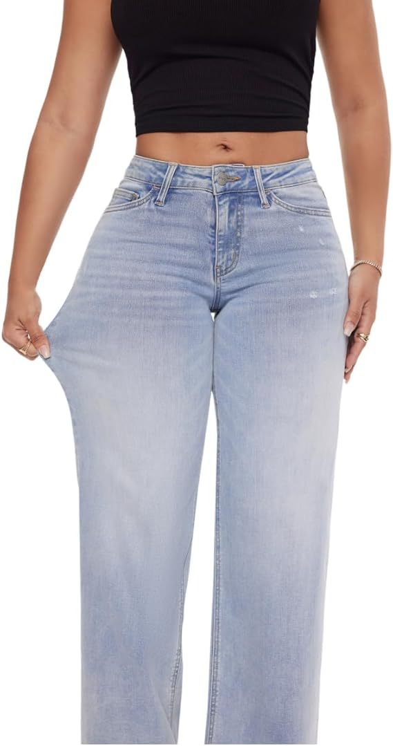 2025 Amazon Cross-border 새로운 좁은 넓은 다리 뾰족한 바지 여성을위한 중간 허리 엉덩이 곧은 느슨한 청바지스토어 가기